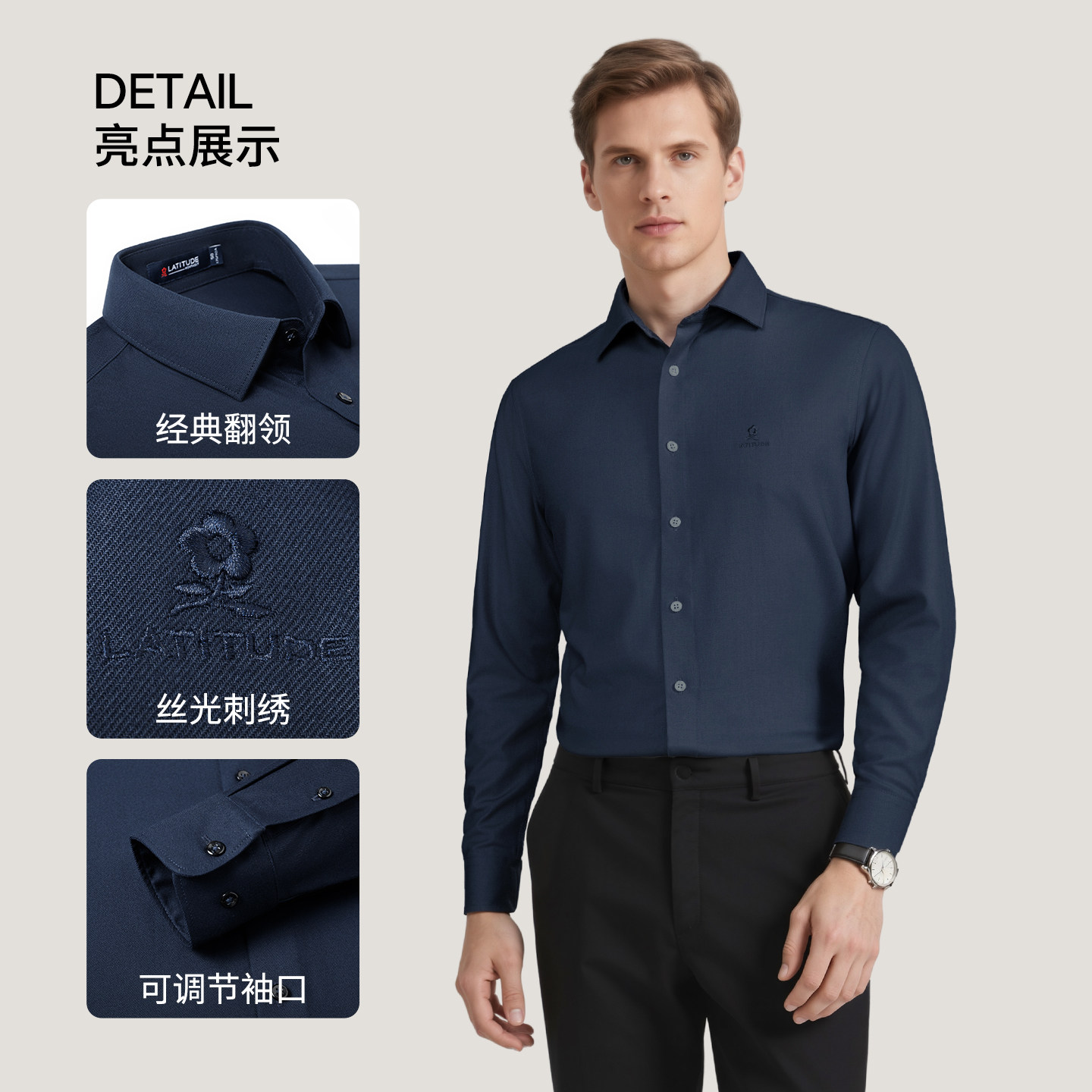 超值回馈款男士纯色长袖衬衣简约短袖衬衫商务免烫款领佐诺依