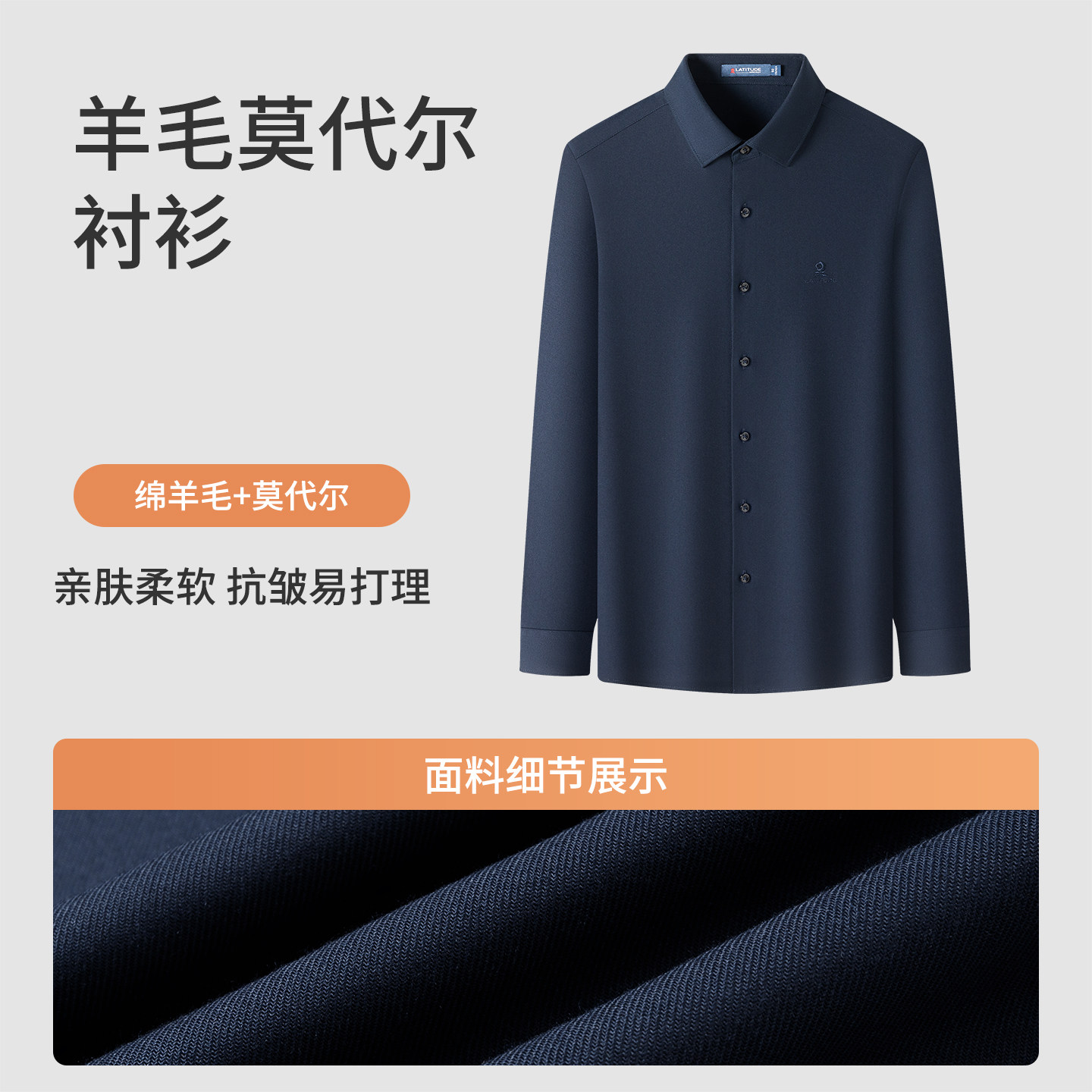 天猫[羊毛抗皱]梦特娇男士羊毛衬衫春季商务中年长袖莫代尔衬衣亲肤J