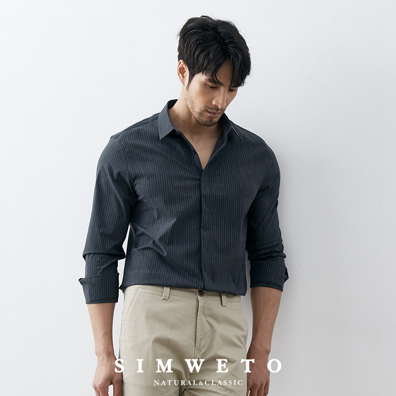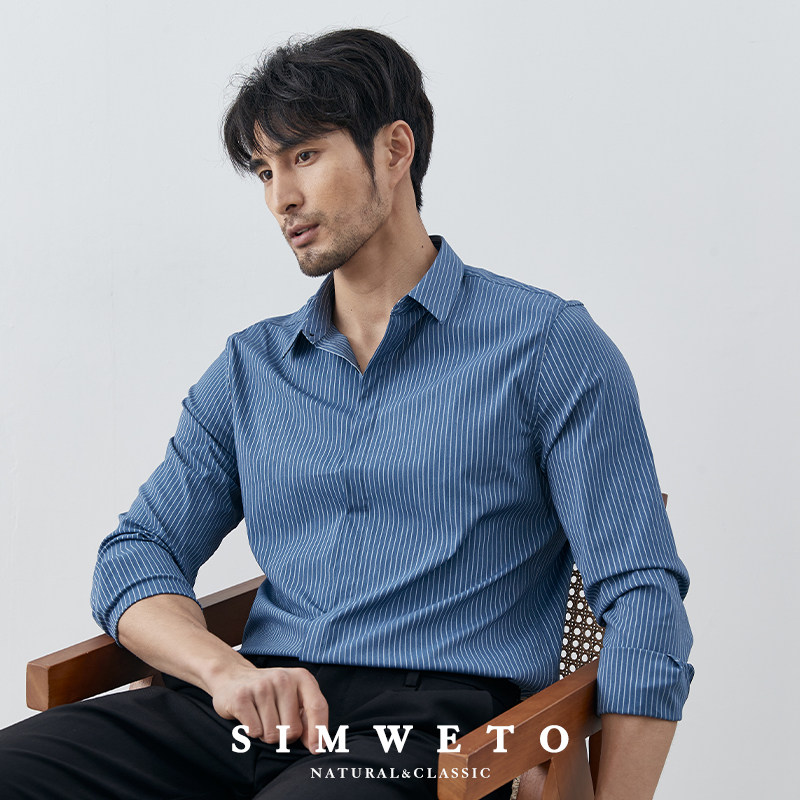 天V.SHOLIDAY春夏暗门襟五弹衬衫男薄款短袖商务休闲长袖/B62/B32