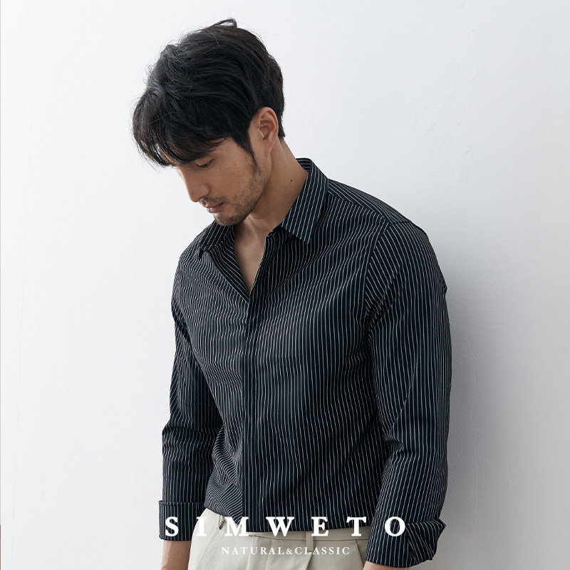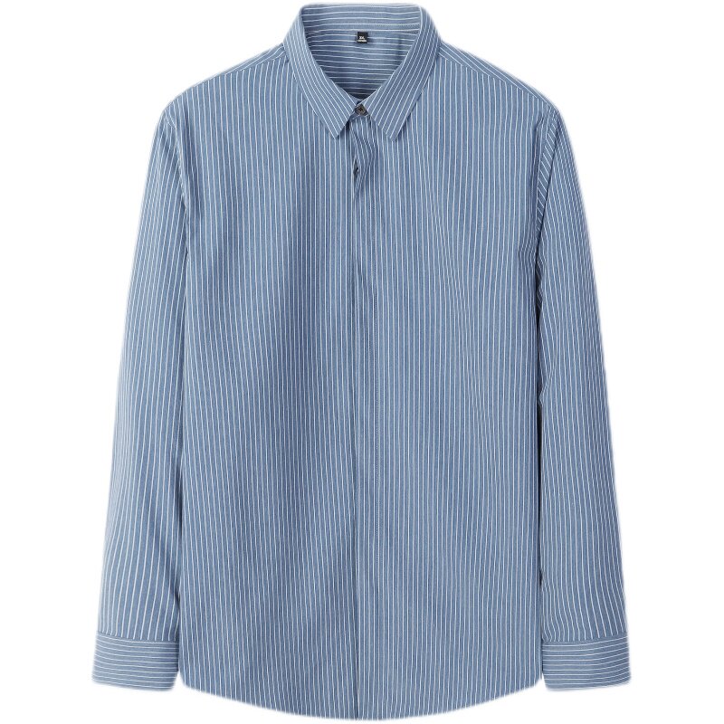 淘宝春季商务白色条纹衬衣暗门襟设计感婚礼正装寸衫免烫上班白衬衫潮