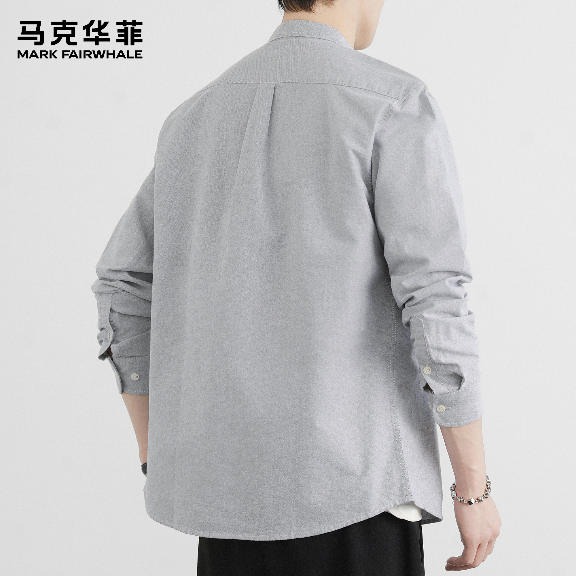天猫马克华菲长袖衬衫男款潮牌日系复古cityboy立领纯棉口袋衬衣外套