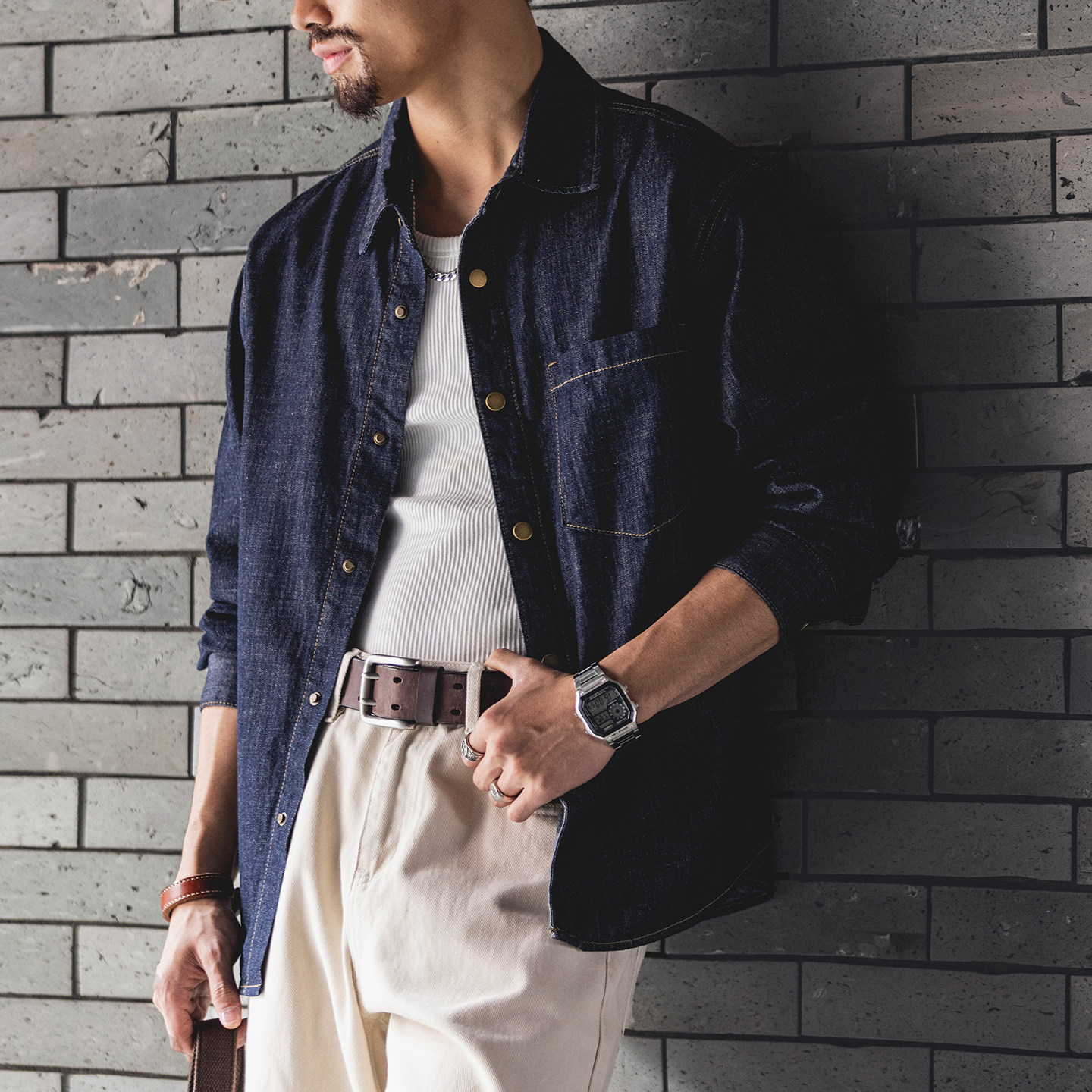 淘宝莱塞尔苎麻混纺牛仔衬衫男士2026春季新款防褪色大码工装长袖衬衣