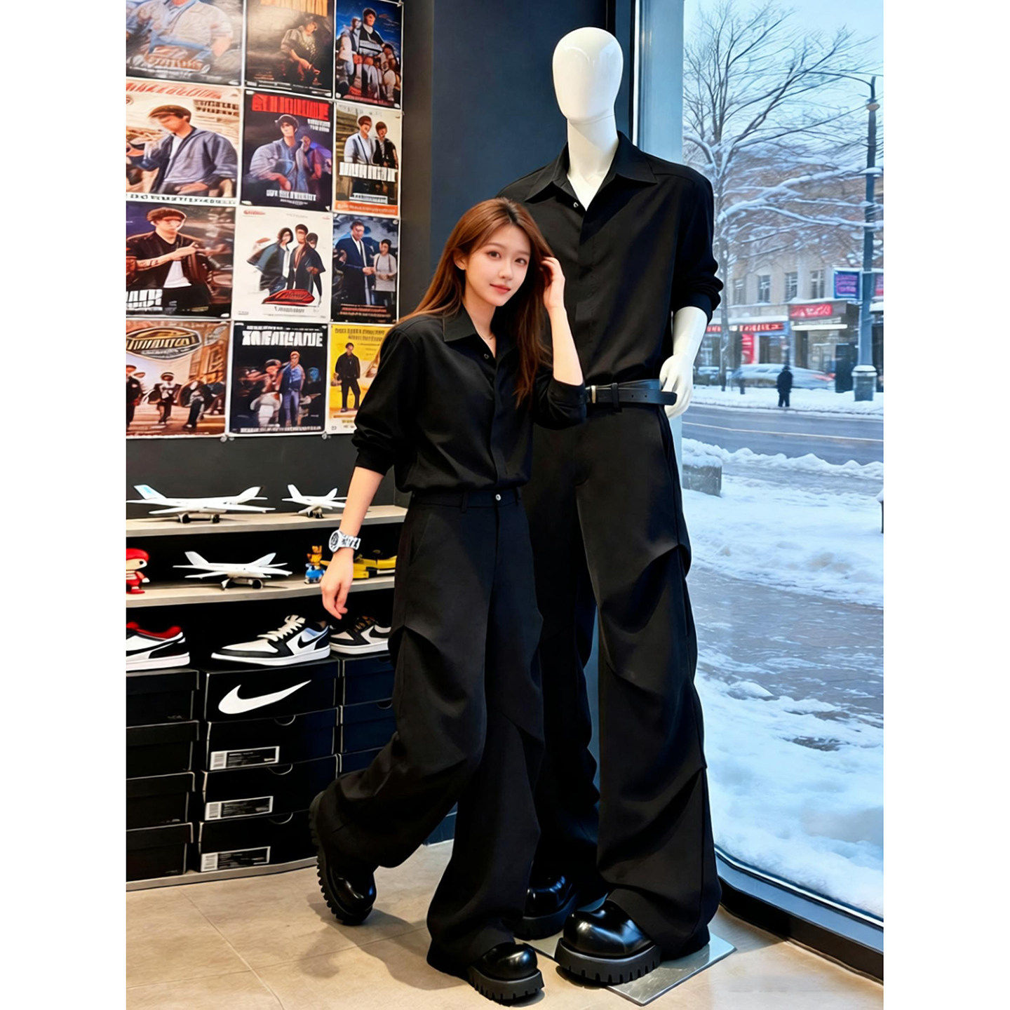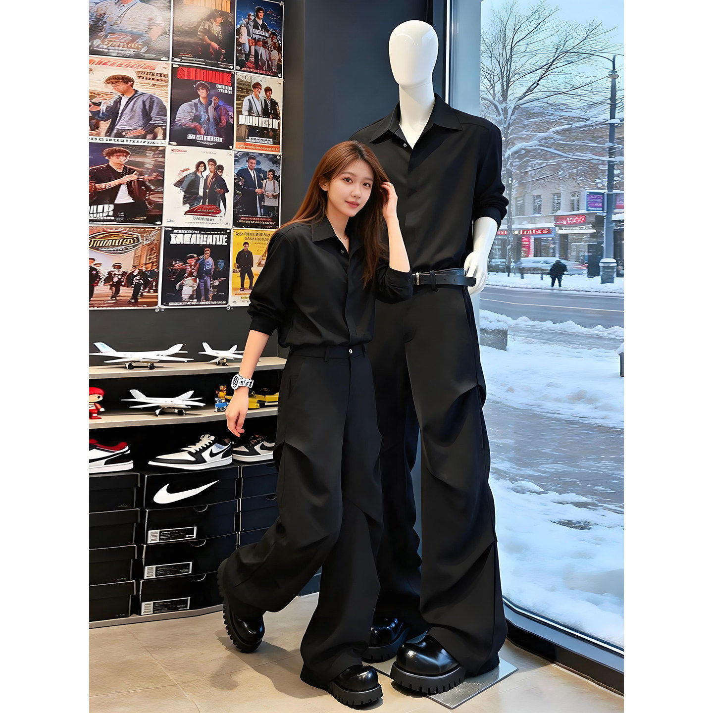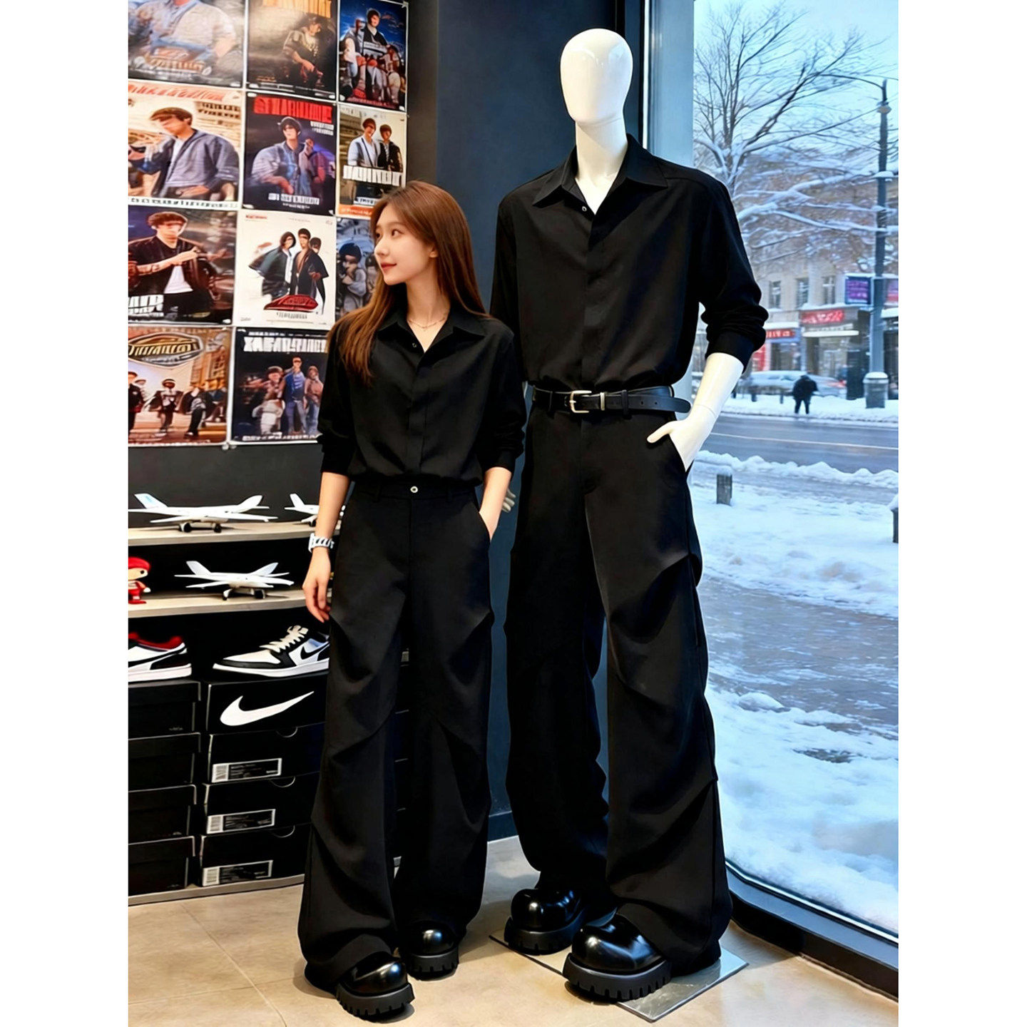 天猫黑色加绒长袖衬衫男士秋冬高级感西装内搭衬衣英伦轻熟风男装外套