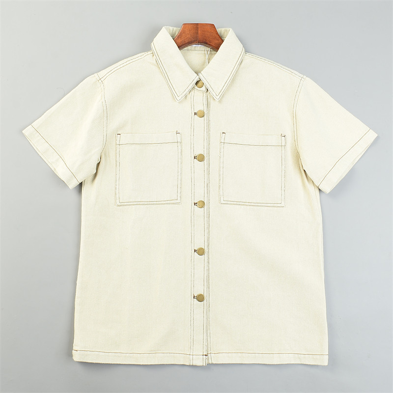【INSKR】国潮牌情侣美式多口袋渐变水洗牛仔衬衫宽松短袖衬衣男