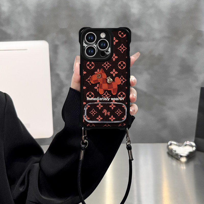 天猫英文小马全型号适用于苹果手机壳vivo华为OPPO小米荣耀保护套iphone17pro四角挂绳皮纹新款镜头全包防摔高级