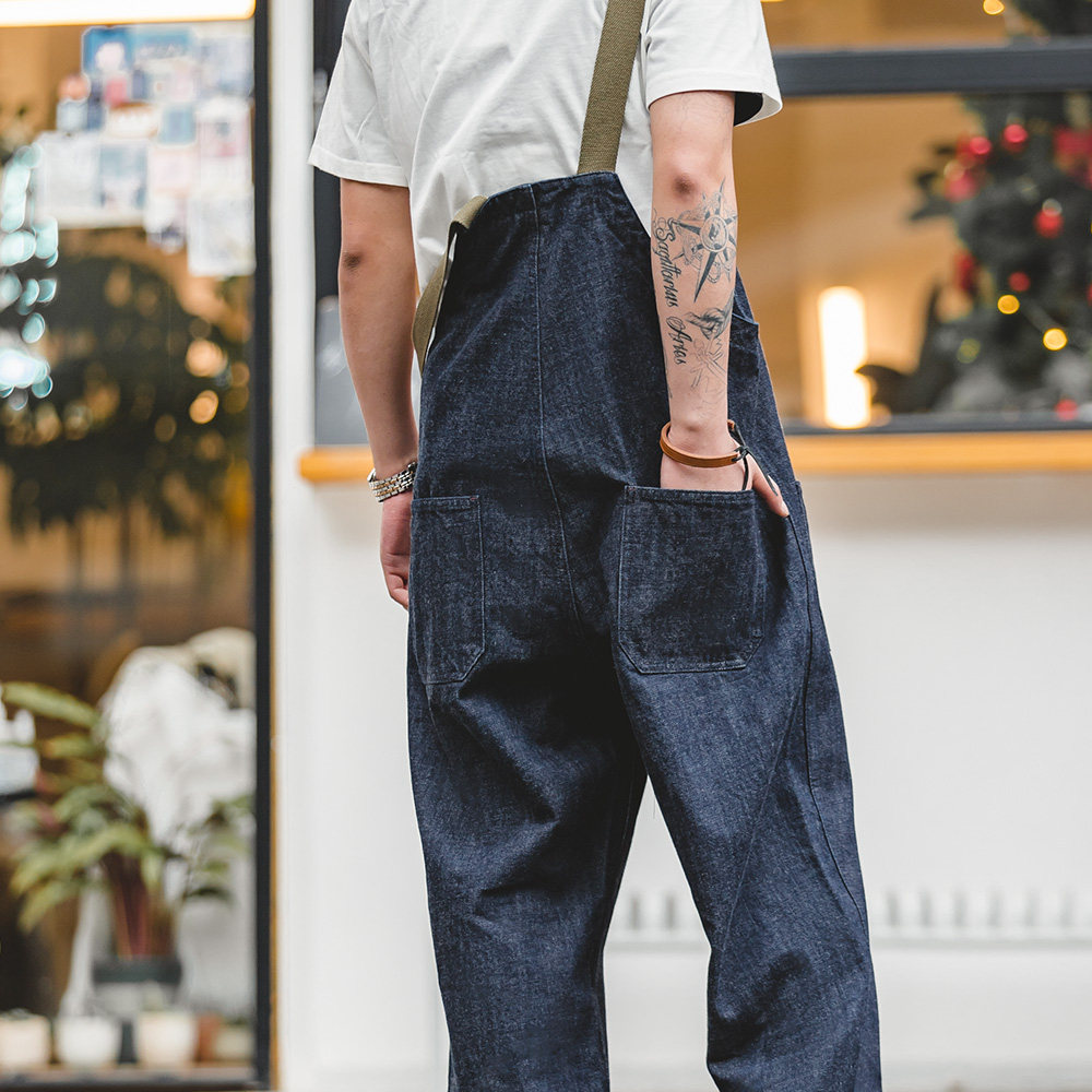 淘宝马登工装美式复古海军甲板背带裤直筒阔腿套装吊带牛仔裤子男春