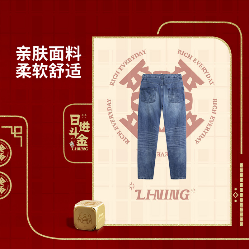 天猫李宁正品日进斗金系列男子时尚潮流休闲水洗牛仔长裤AJQV003