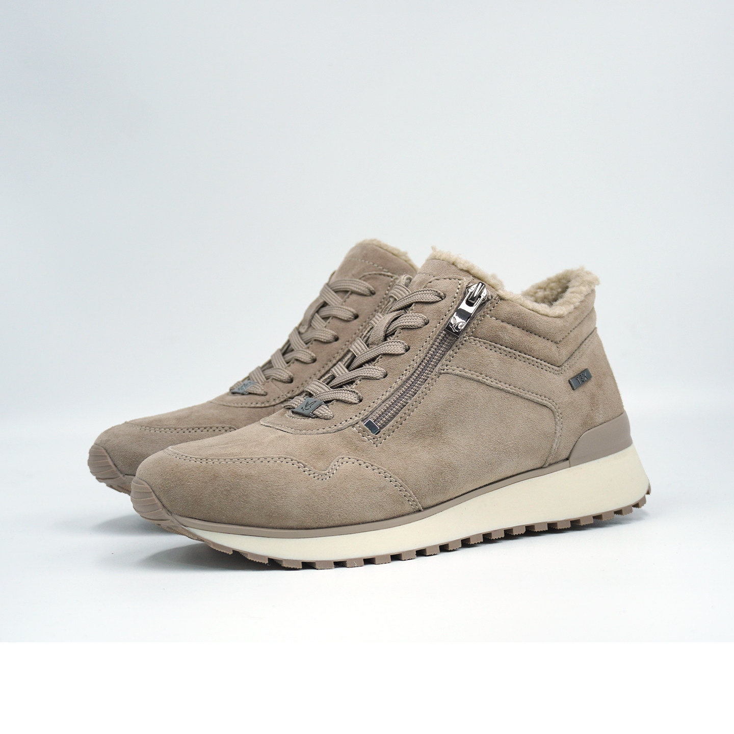 德国CAPRICE凯蝴蝶2025秋冬新品雪地靴(型号25201),以经典与时尚融合为设计理念,精选优质牛皮材质,质感细腻,耐磨耐穿。内衬采用柔软加绒工艺,保暖舒适,轻松应对寒冷季节。鞋型简约大方,搭配防滑橡胶大底,兼顾安全性与时尚感,适合日常通勤与休闲出行。细节处彰显品牌匠心,如精致缝线与金属扣饰,提升整体质感。CAPRICE始终致力于为女性打造兼具舒适与美感的鞋履,这款雪地靴不仅实用保暖,更以百搭设计轻松驾驭多种穿搭风格,是秋冬衣橱的理想之选。