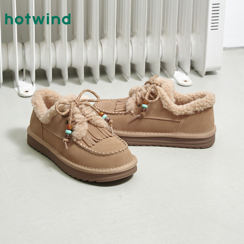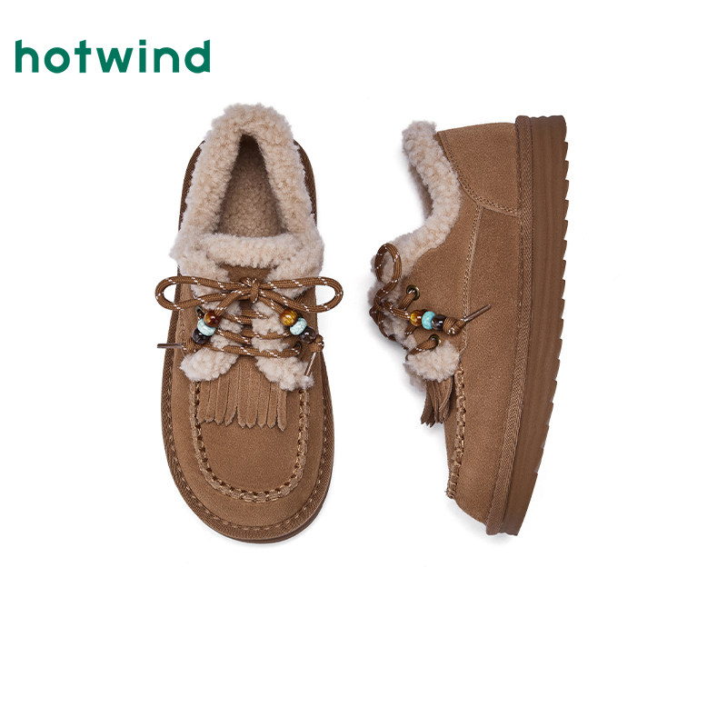 2025年冬季新款热风加绒毛毛鞋,专为女性打造,集保暖、舒适与时尚于一体。采用优质杏色百搭纯色设计,简约大方,轻松搭配各类冬装。内里加厚加绒,柔软亲肤,有效锁住温度,抵御严寒。鞋底防滑耐磨,行走稳健安全。鞋型贴合脚部曲线,穿着轻盈无束缚感,适合日常通勤、逛街或居家休闲。无论是雪地出行还是寒冷天气,都能提供持久温暖。热风品牌匠心工艺,注重细节与品质,让每一步都温暖如春。这款雪地靴不仅是冬季保暖的必备单品,更是展现优雅气质的时尚之选。
