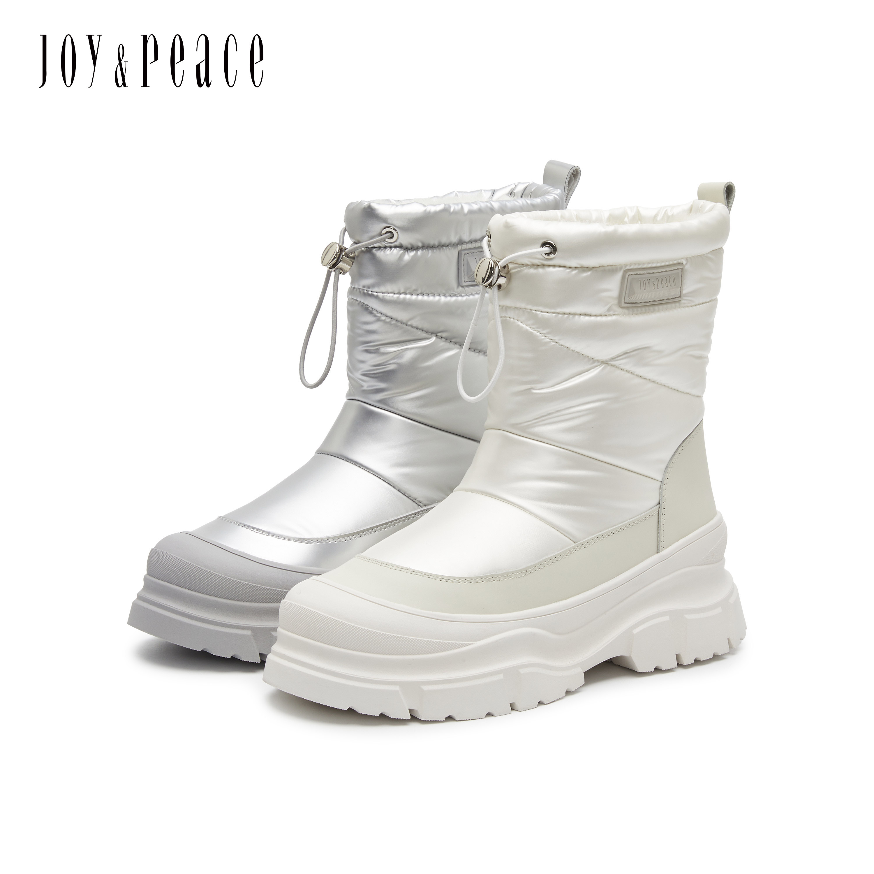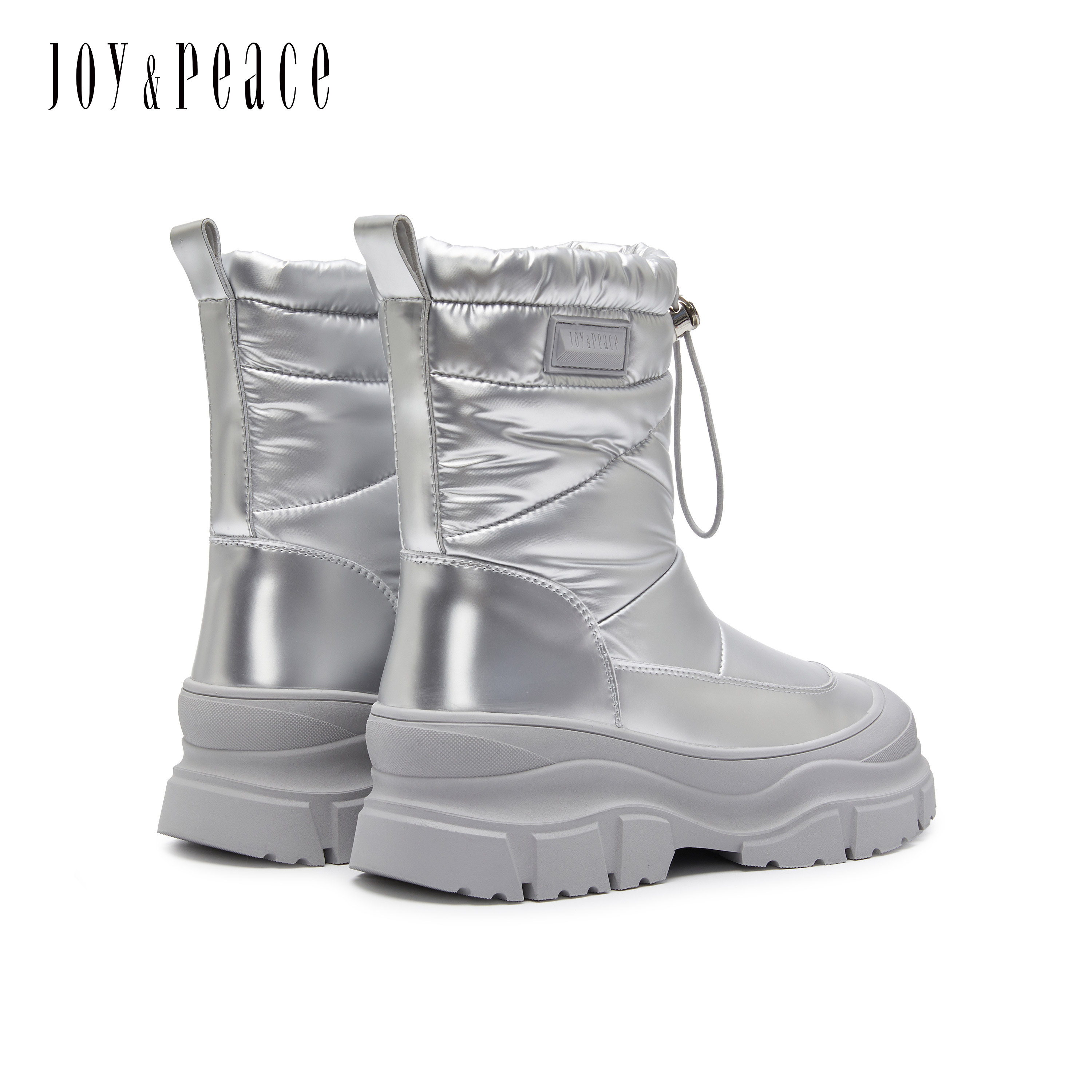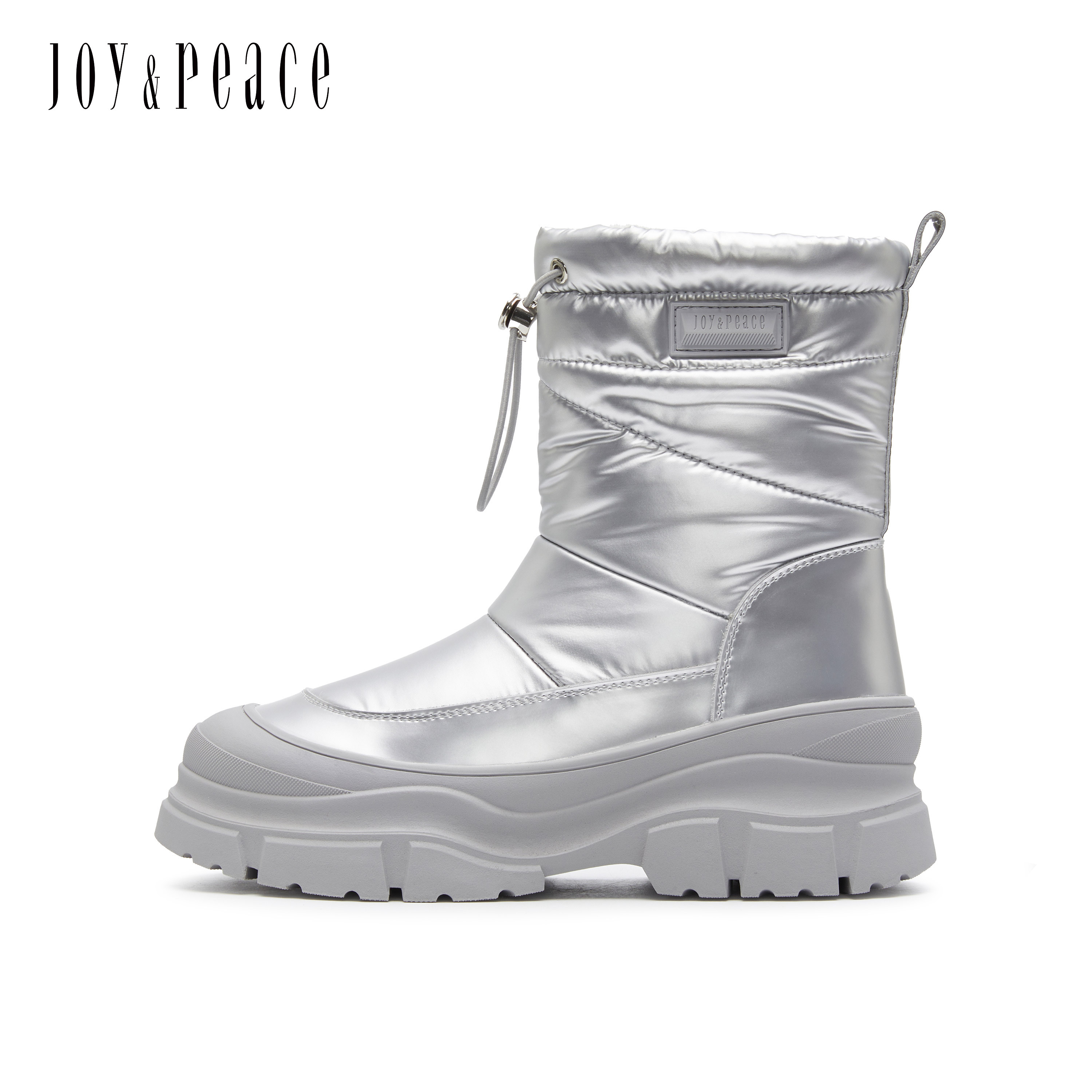 天猫真美诗冬新款银色机能风保暖加绒中筒厚底雪地靴女8019ADZ4