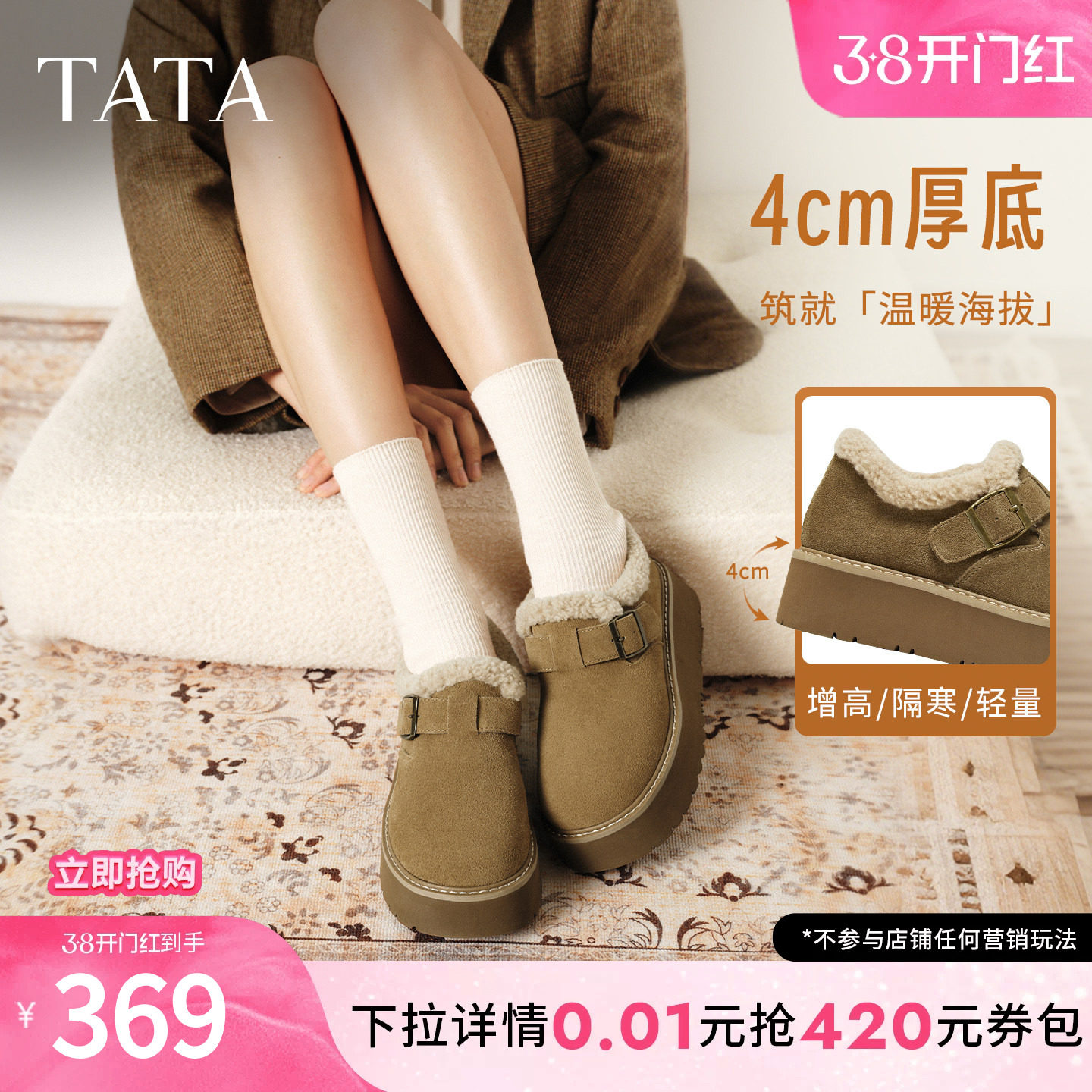 天猫TATA他她雪地靴女2025冬季新款勃肯鞋毛毛保暖加绒棉鞋JYV01DM5