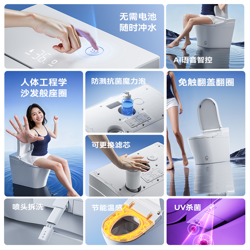 天九牧卫浴官方旗舰零水压智能马桶家用感应翻盖虹吸坐便器S800i哦