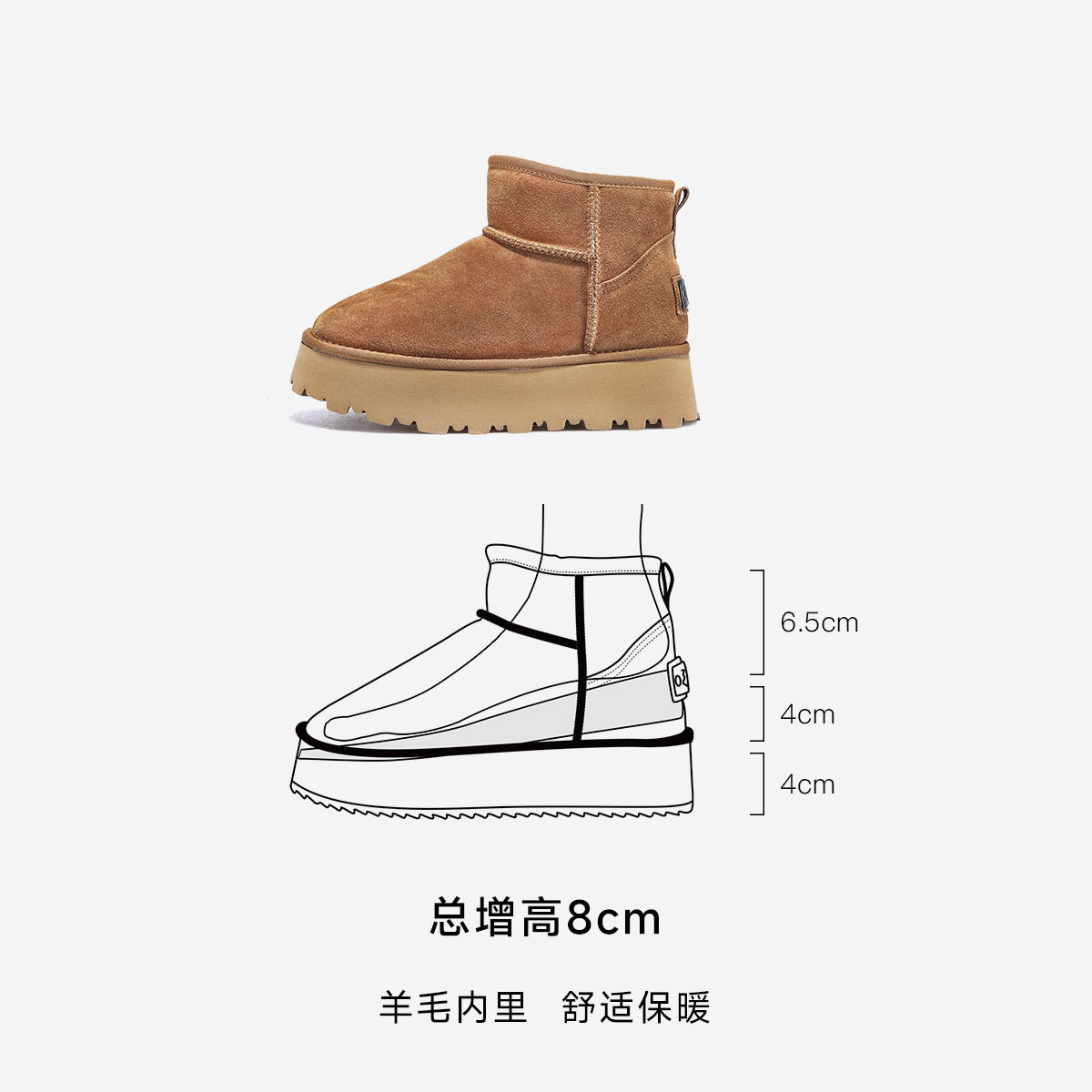 天猫【谭松韵同款】iiJin艾今冬8cm厚底内增高保暖羊毛雪地靴女707OFA