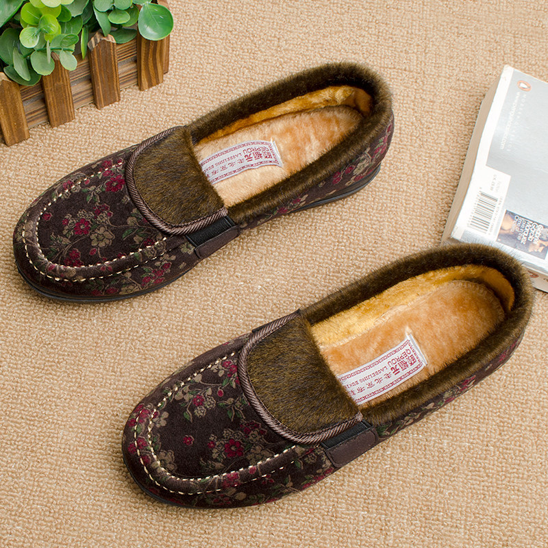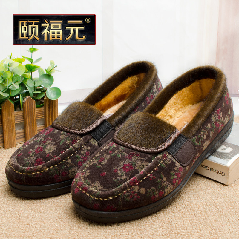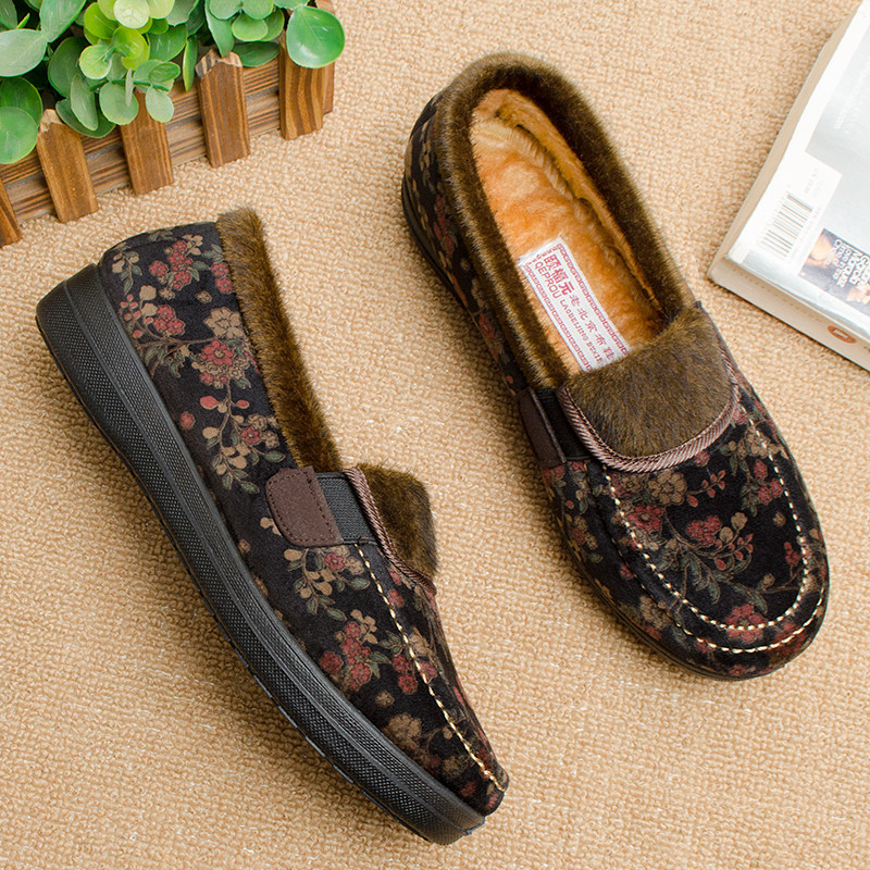 淘中老年休闲鞋老北京布鞋冬季款软底加绒中年单鞋女软面轻便妈妈鞋