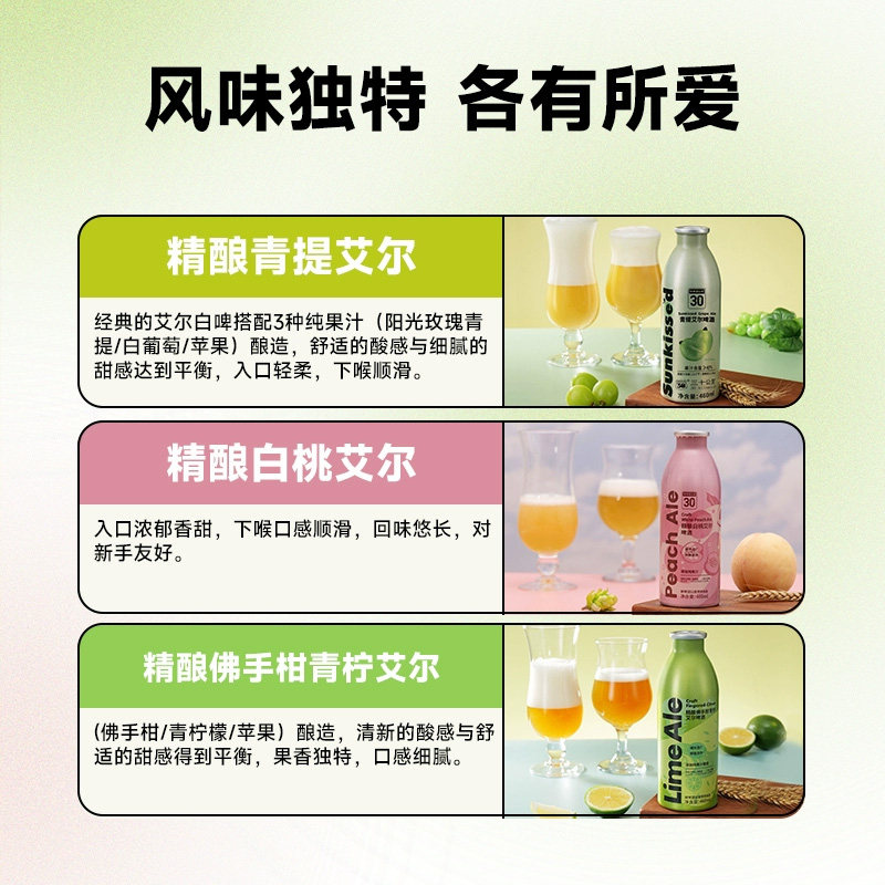 【鲜啤三十公里】30公里精酿果啤,专为追求品质生活的女性打造。精选佛手柑与白桃天然果香,融合精酿工艺,口感清新顺滑,果味馥郁,微醺不醉人。酒精度低,轻盈易饮,适合闺蜜小聚、午后独酌或佐餐搭配。瓶身设计简约时尚,彰显生活格调。严选优质原料,短保新鲜,确保每一口都如现酿般鲜活。现已入驻主流商超,触手可及。30公里,不仅是距离,更是对新鲜与品质的坚持。让每一次举杯,都成为生活中的小确幸。适合追求精致、热爱微醺时刻的你,开启轻松惬意的果啤新体验。