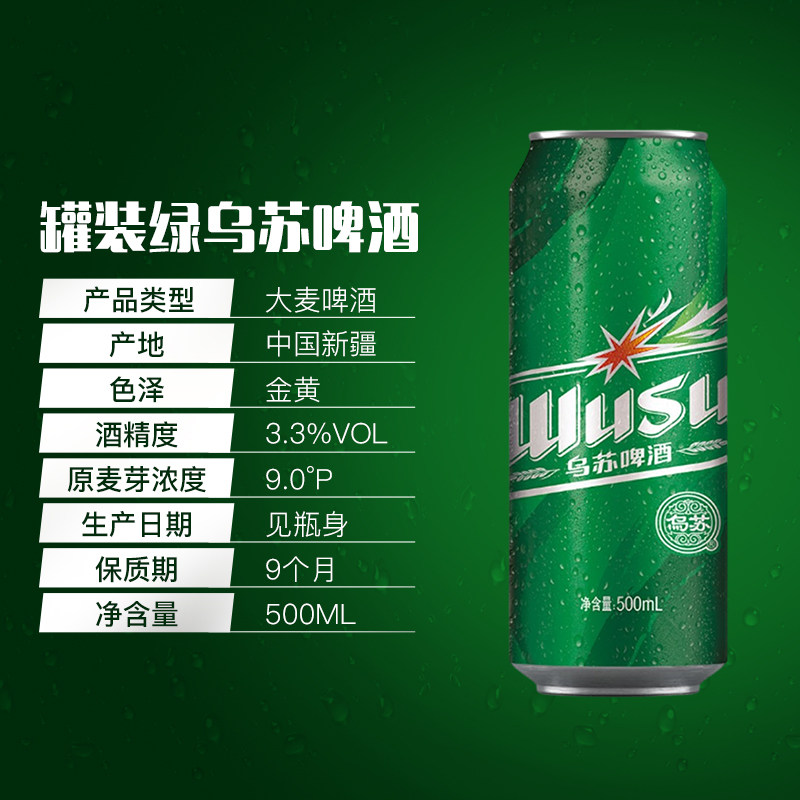 淘宝乌苏啤酒 新疆绿乌苏500ml罐装6/12/24整箱装夺命大乌苏 正品保证