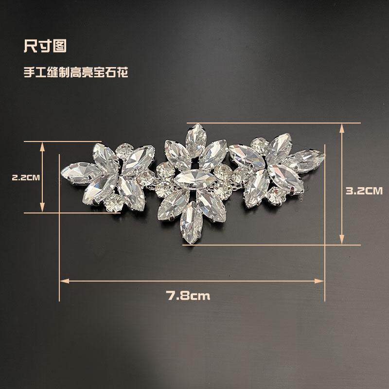 淘宝精致宝石花手缝衣领链钻花白水钻服装配饰 领口袖口装饰皮草袖扣