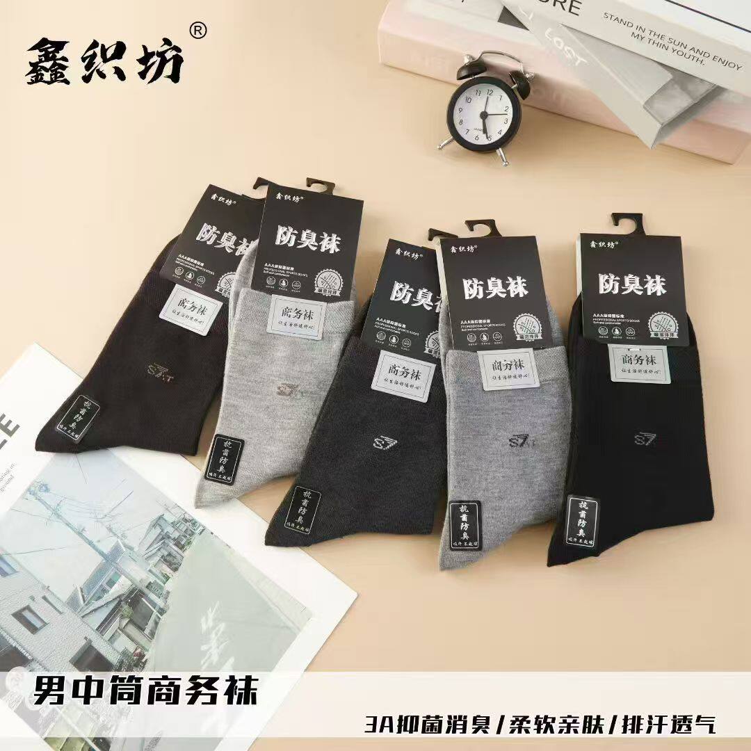 天100%棉袜子男士纯棉防臭中筒袜春夏季无骨吸汗抗菌休闲灰色长筒袜