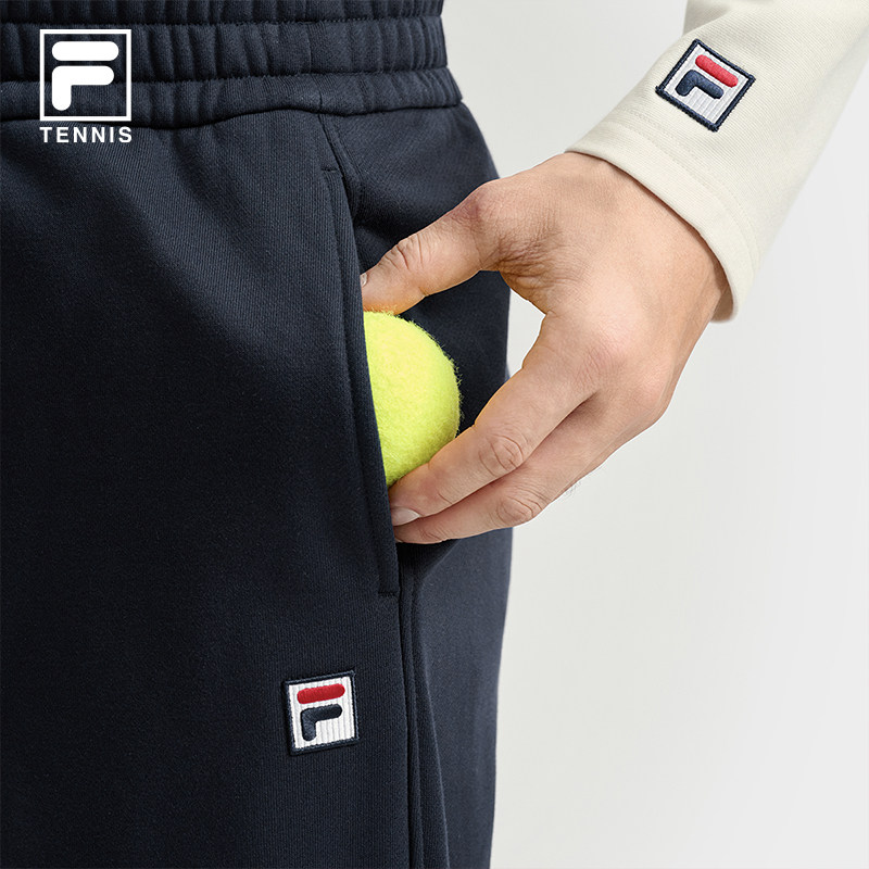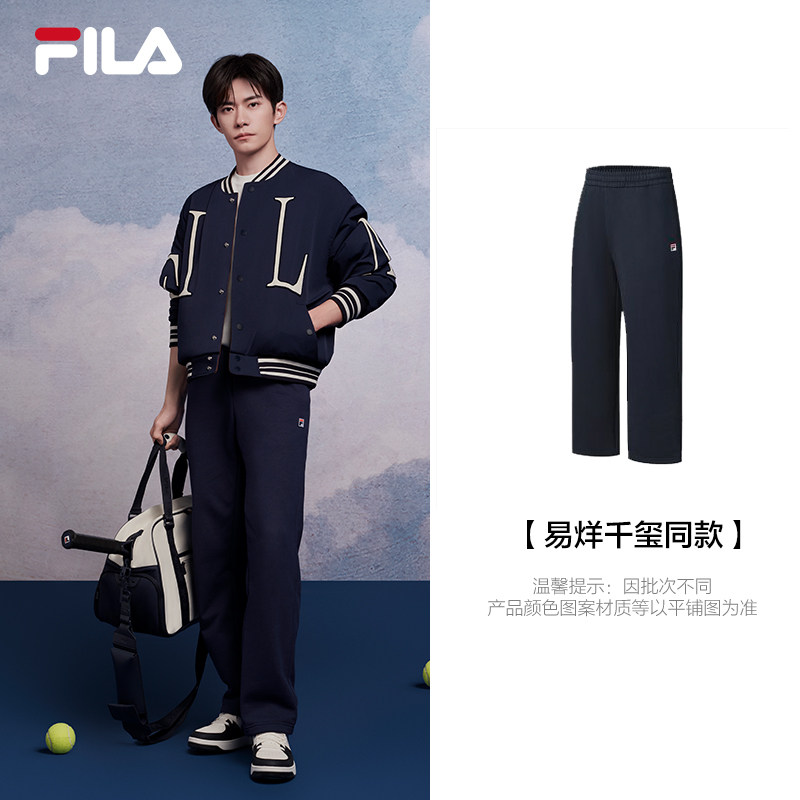 天猫易烊千玺同款FILA 斐乐官方男士长裤2025冬季新款网球加绒直筒裤
