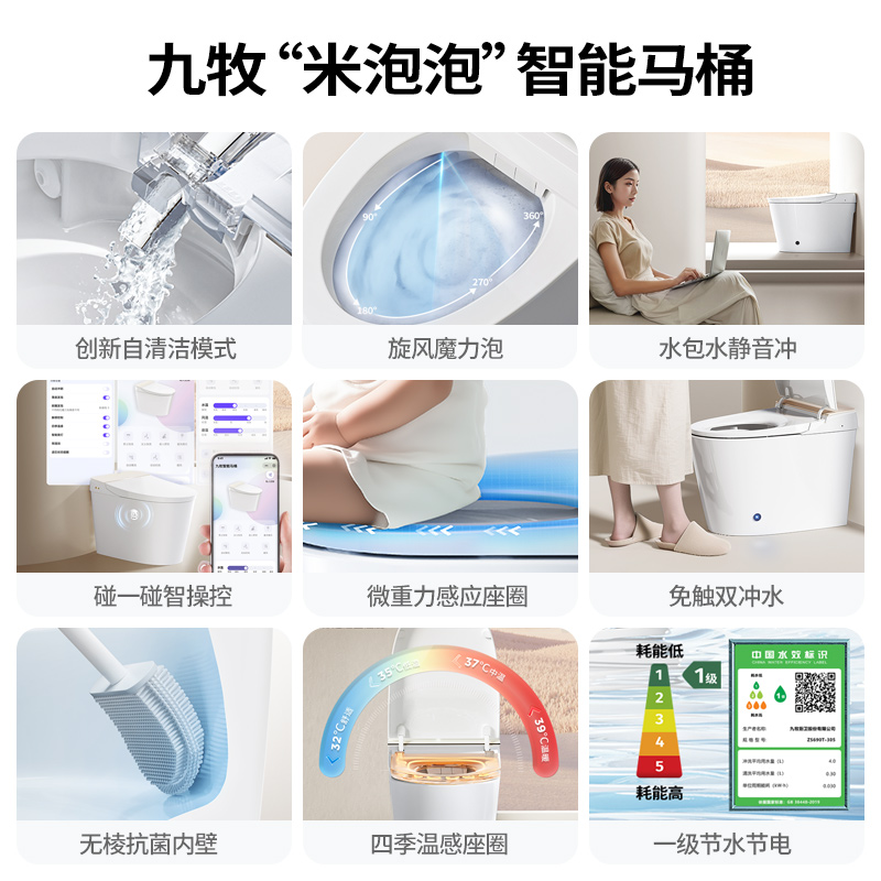 天猫九牧智能马桶米泡泡自清洁旋风魔力泡智能坐便器