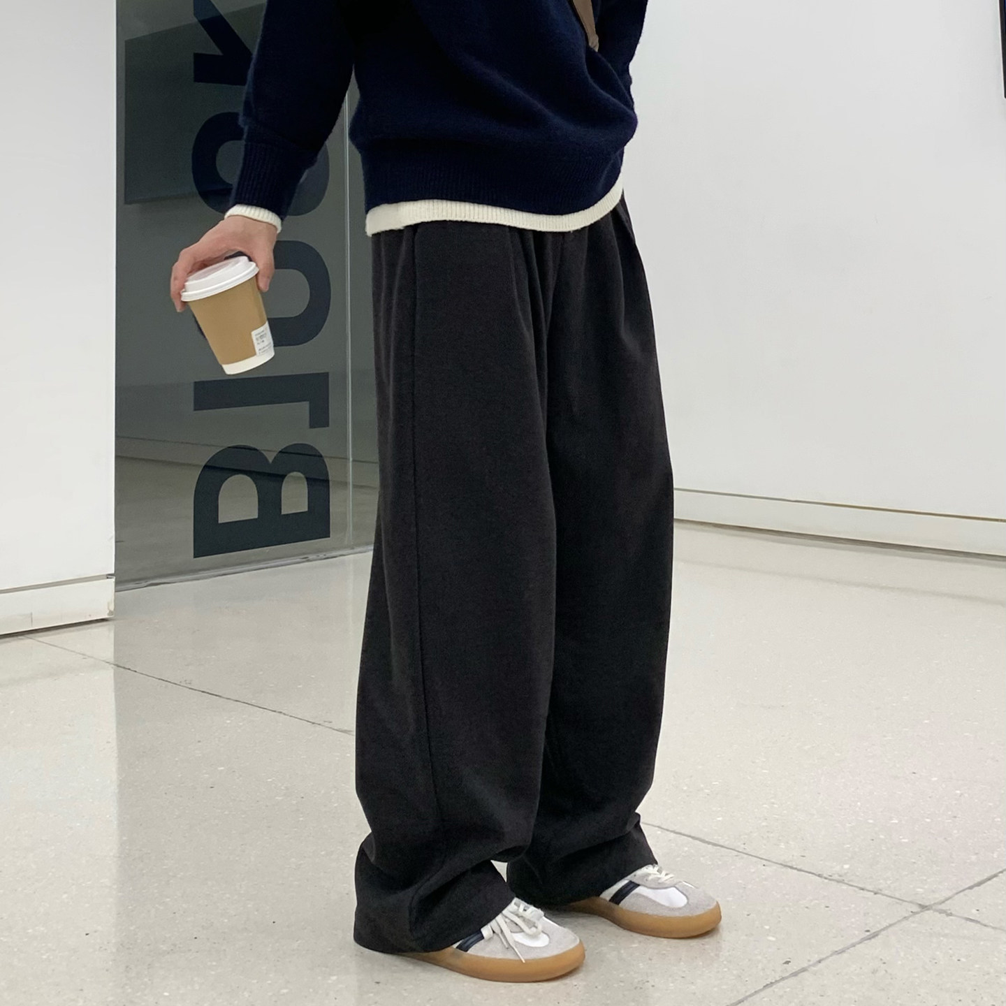 淘宝深灰色毛呢直筒西裤男款2026新款秋冬季宽松保暖加厚垂感休闲长裤