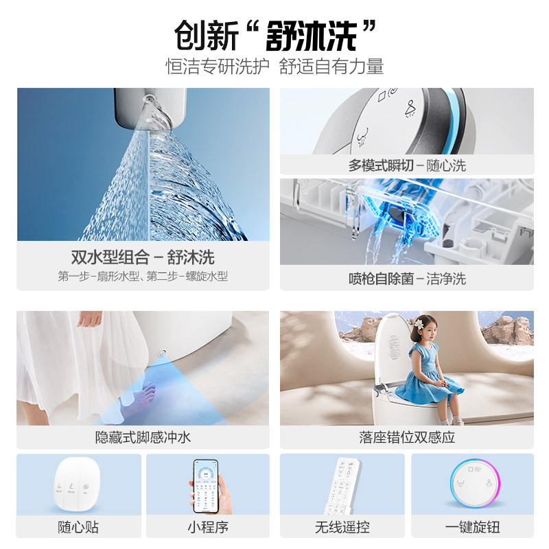 天恒洁卫浴舒沐洗智能马桶一体式坐便器脚感家用小户型H5自由版