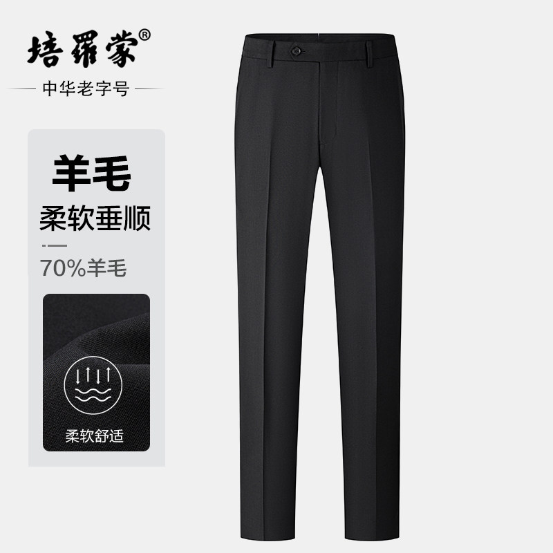 天猫培罗蒙冬季新款男士西装裤商务休闲裤可机洗黑色加厚保暖羊毛西裤