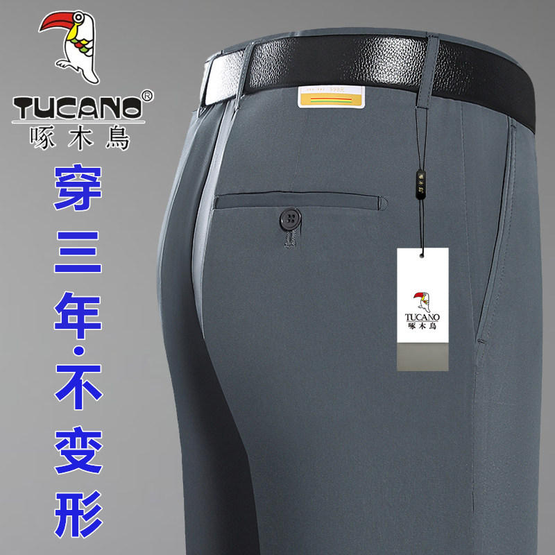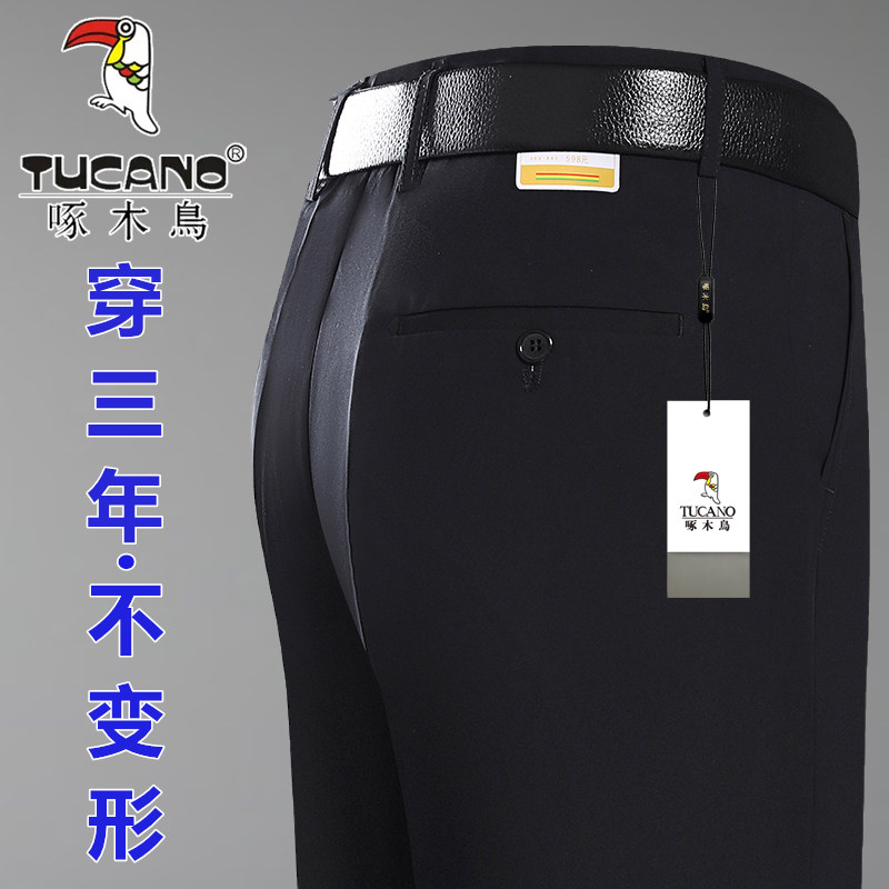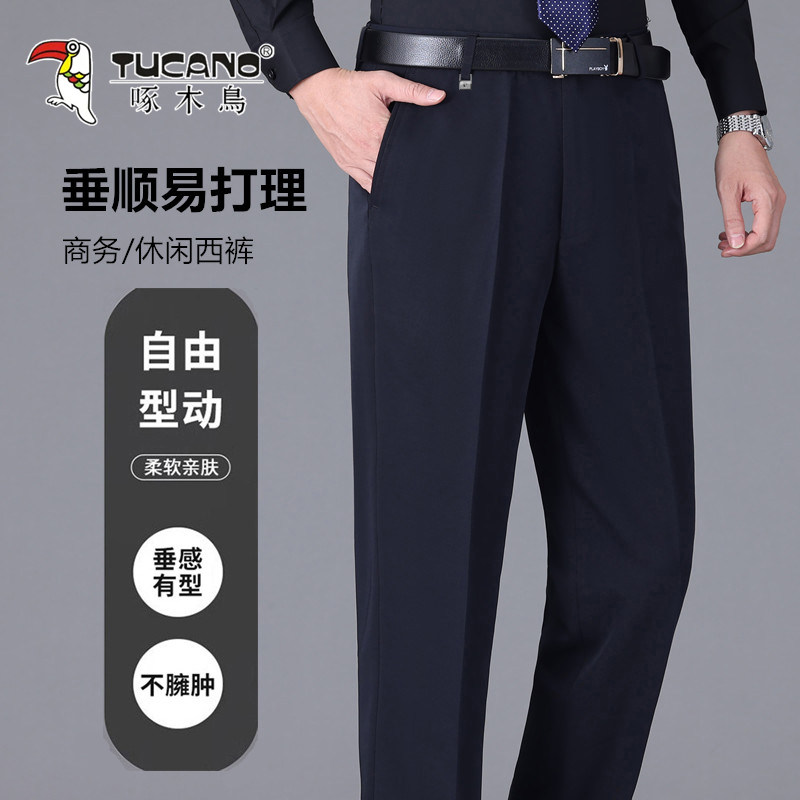 淘宝啄木鸟超垂春秋新款休闲西裤男中老年高腰深档直筒宽松爸爸西装裤