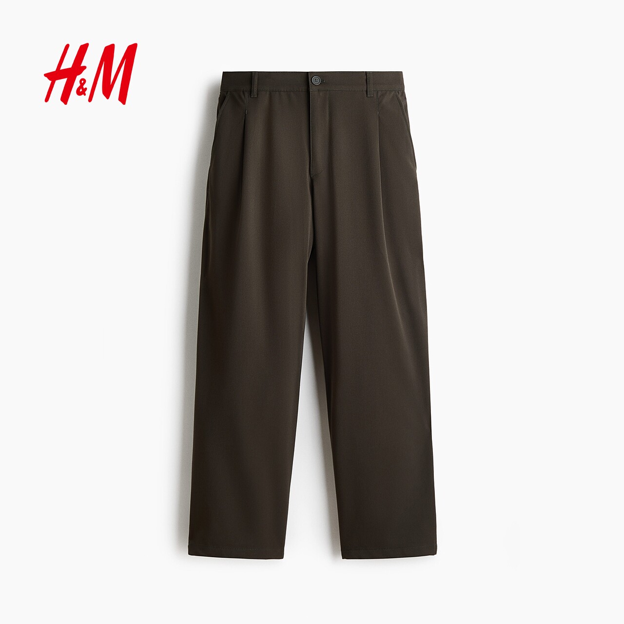 天猫HM男装西裤2026春季新款阔腿通勤商务职业宽松版正装长裤1307968