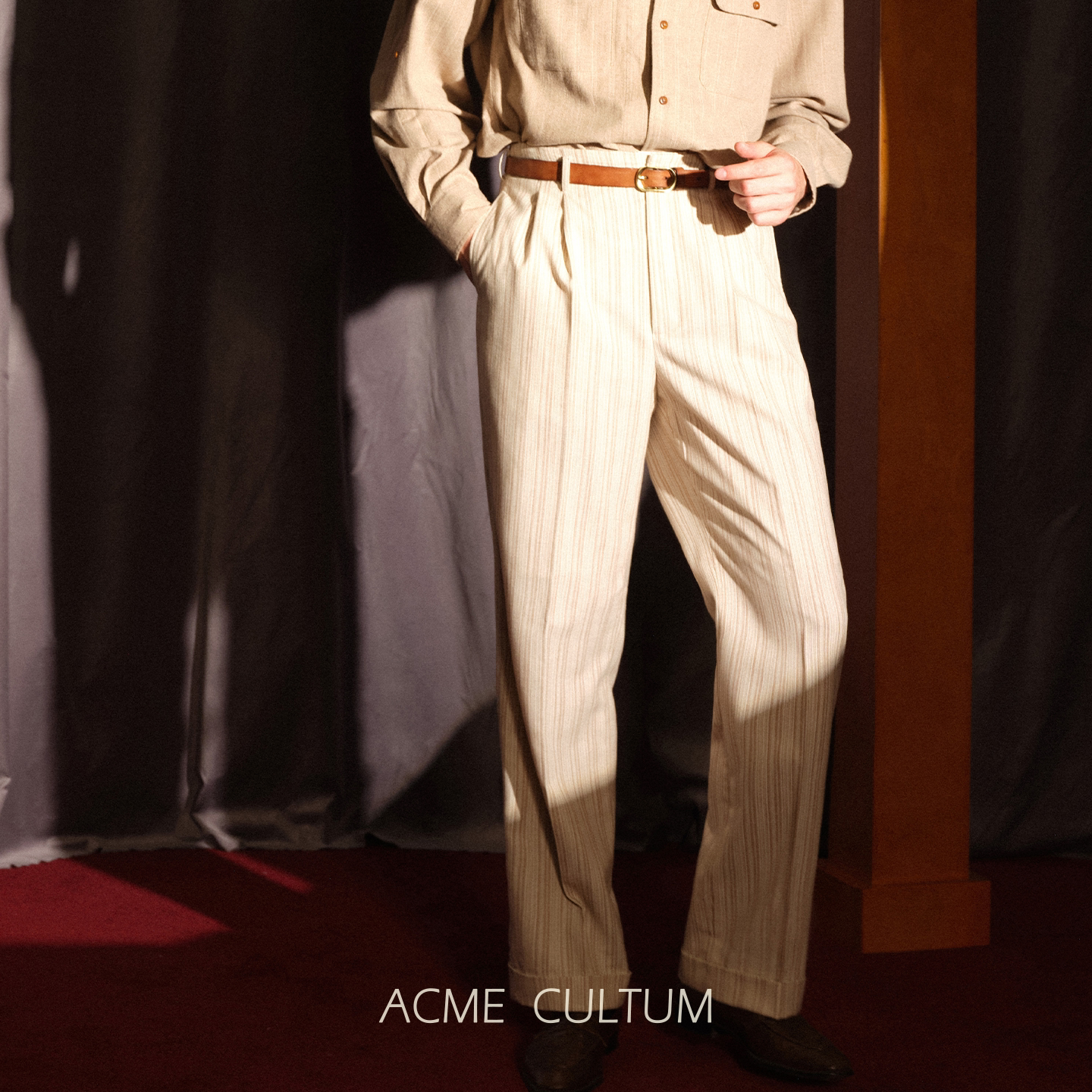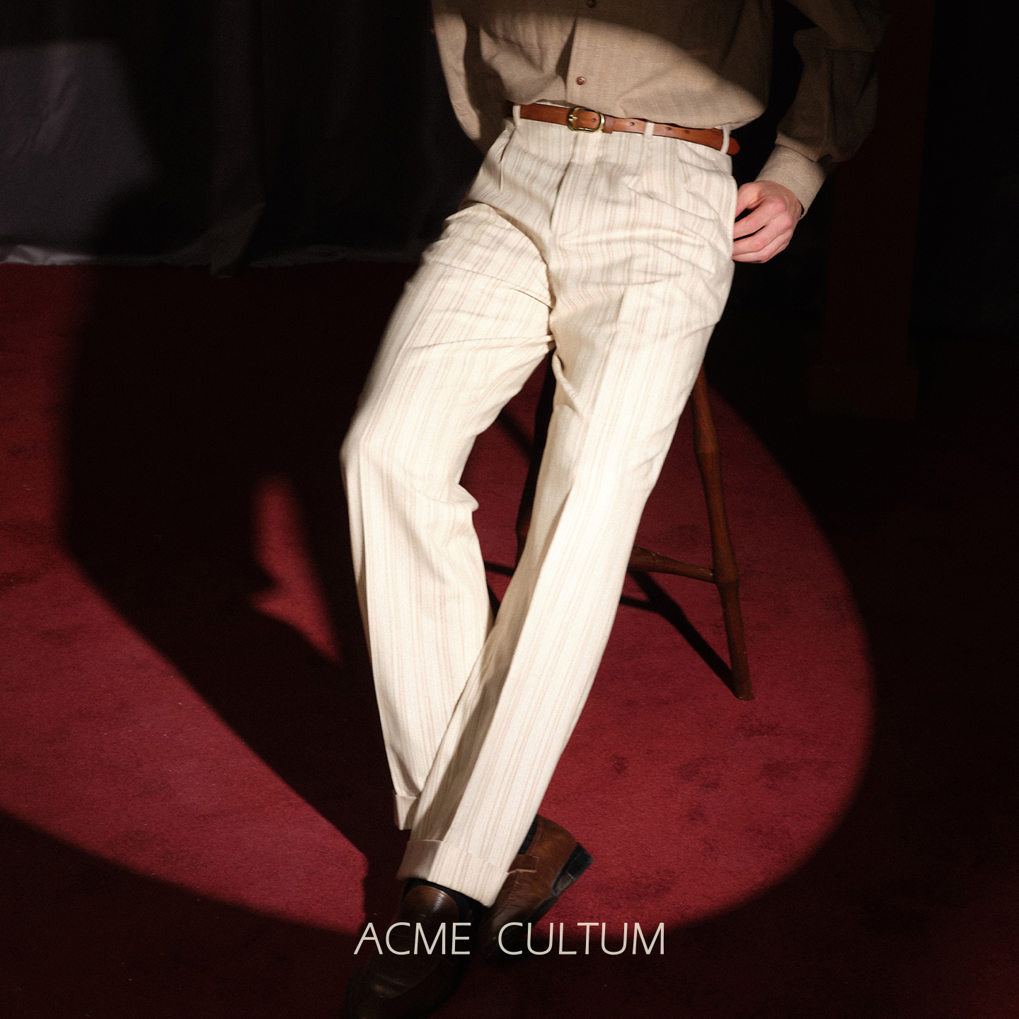 天猫Acme cultum羊毛双褶直筒条纹好莱坞连腰西裤男老钱风休闲长裤冬
