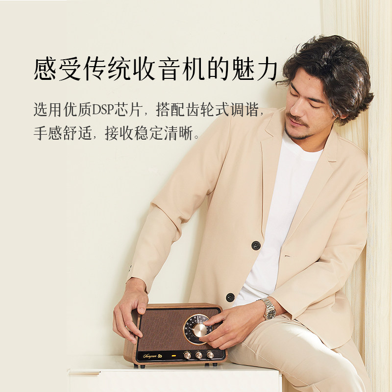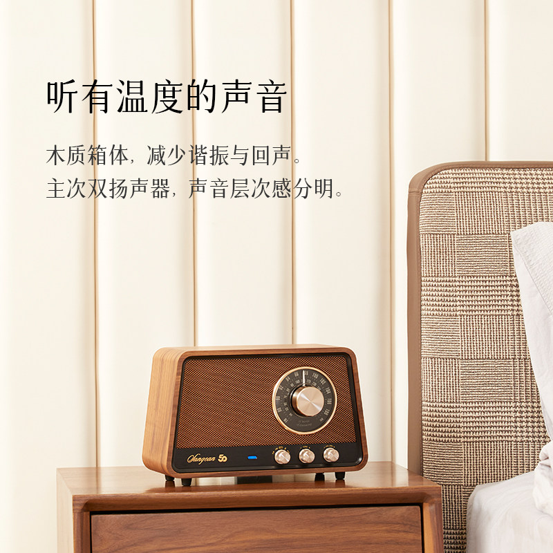 天猫山进R1蓝牙音响家用客厅高音音箱木制家庭摆件复古礼物收音机