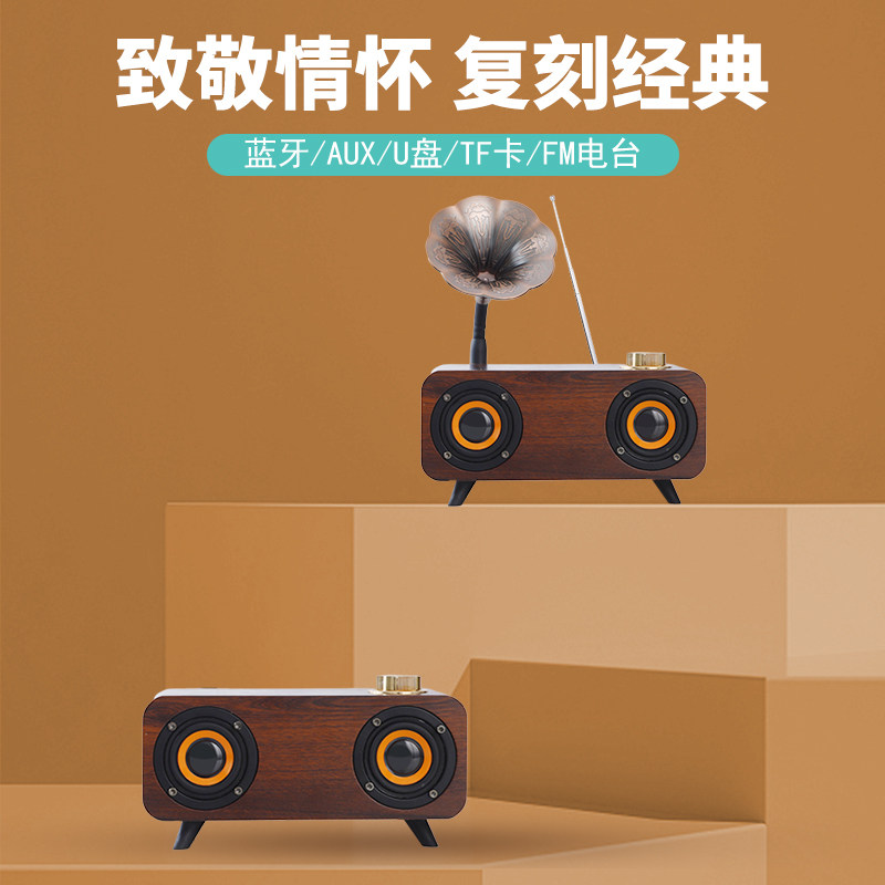 天猫德国柏林之声音效复古木质无线蓝牙音箱高颜值FM收音机重低音炮