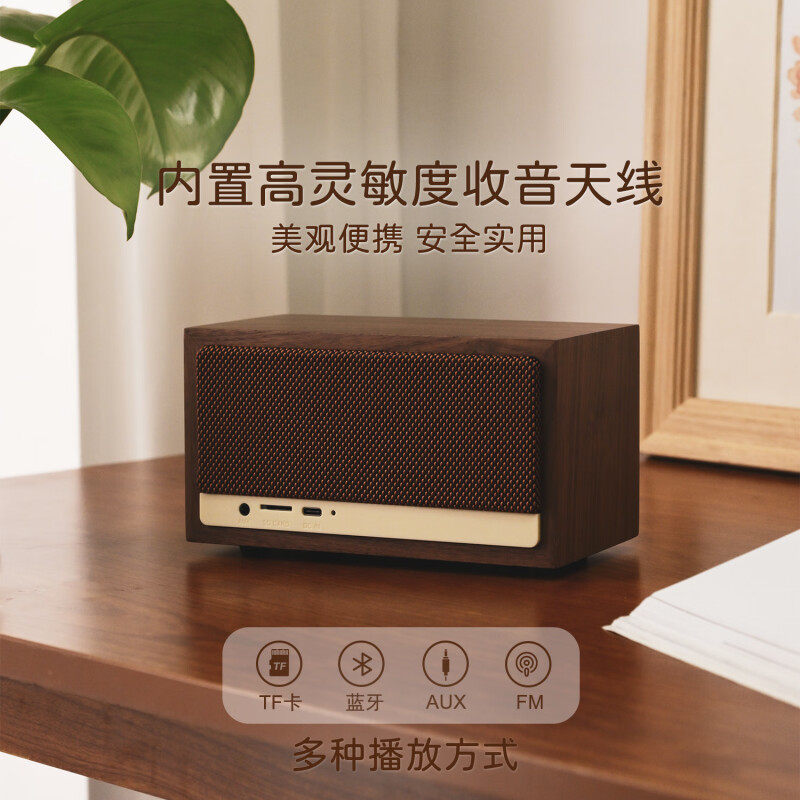 天北美黑胡桃木复古无线桌面蓝牙音箱收音机小型家用木质音响礼物