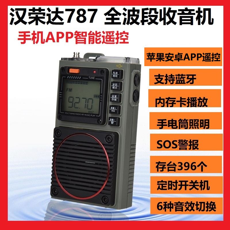 淘宝汉荣达787全波段DSP智能收音机支持苹果安卓手机APP遥控手电筒