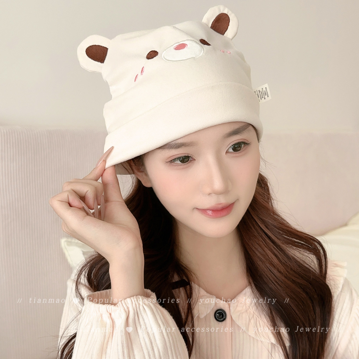 天欢喜小熊孕妇帽春秋防风帽子抗菌月子帽产妇帽防螨护头帽产后用品