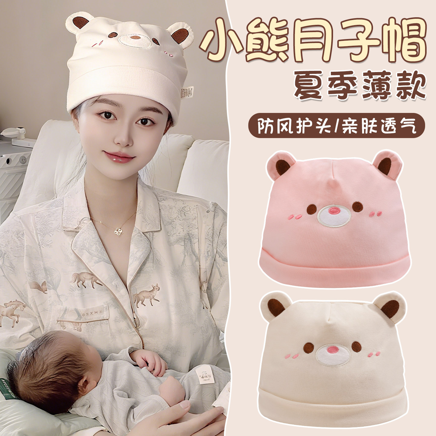 大头围月子帽纯棉a类睡觉可戴产后防风可爱产妇孕妇春夏季薄款帽