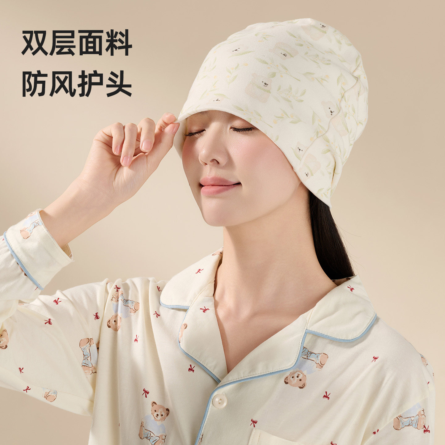 欢喜小熊孕妇帽春秋防风帽子抗菌月子帽产妇帽防螨护头帽产后用品