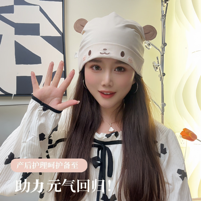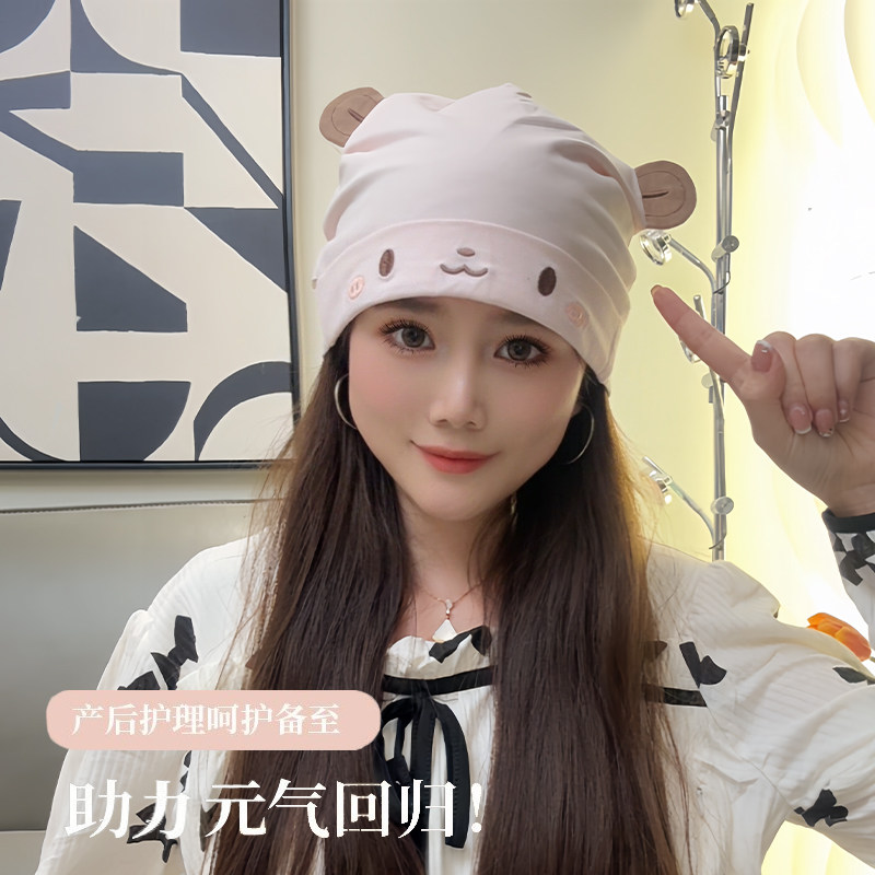 欢喜小熊孕妇帽春秋防风帽子抗菌月子帽产妇帽防螨护头帽产后用品