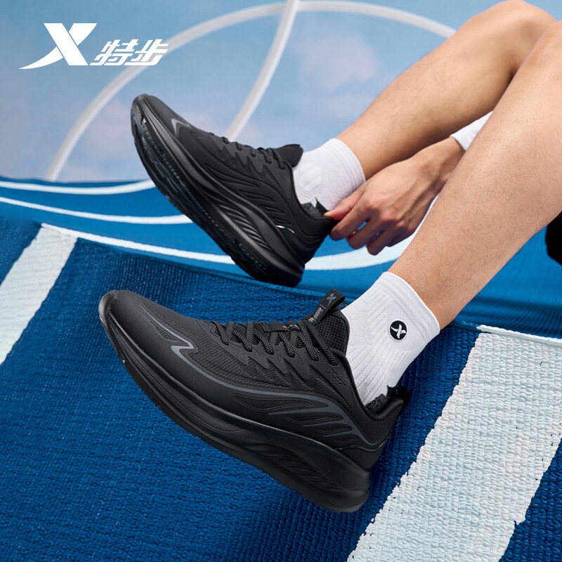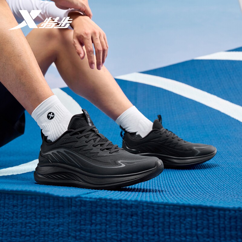 天猫特步跑步鞋2026春夏新款男鞋黑色跑鞋减震防滑运动鞋女透气训练鞋