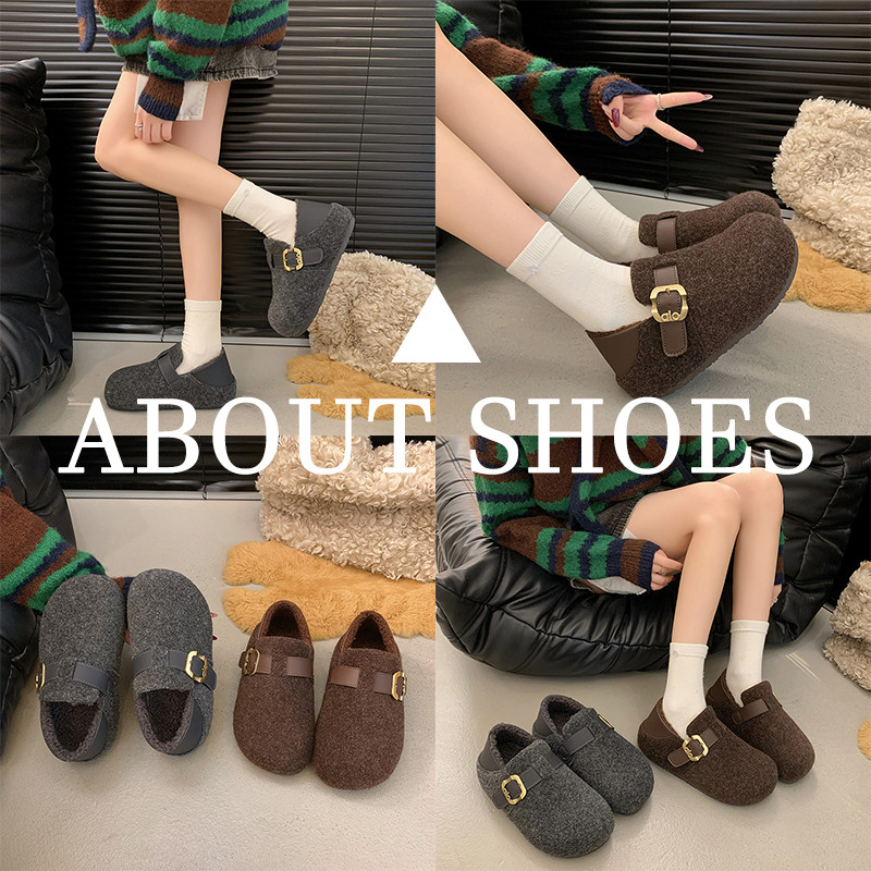 女大码鞋41到43加绒勃肯鞋厚底内增高软底保暖棉鞋全包复古毛毛鞋