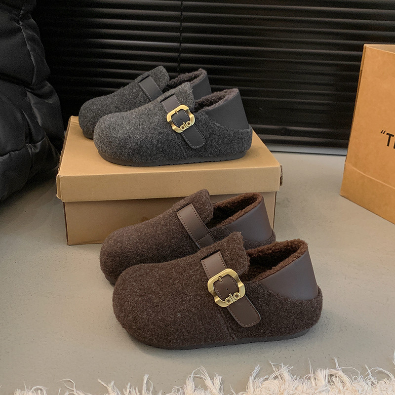 米新款~真皮羊羔绒保暧平跟勃肯鞋2025年冬款防滑底加毛豆豆鞋