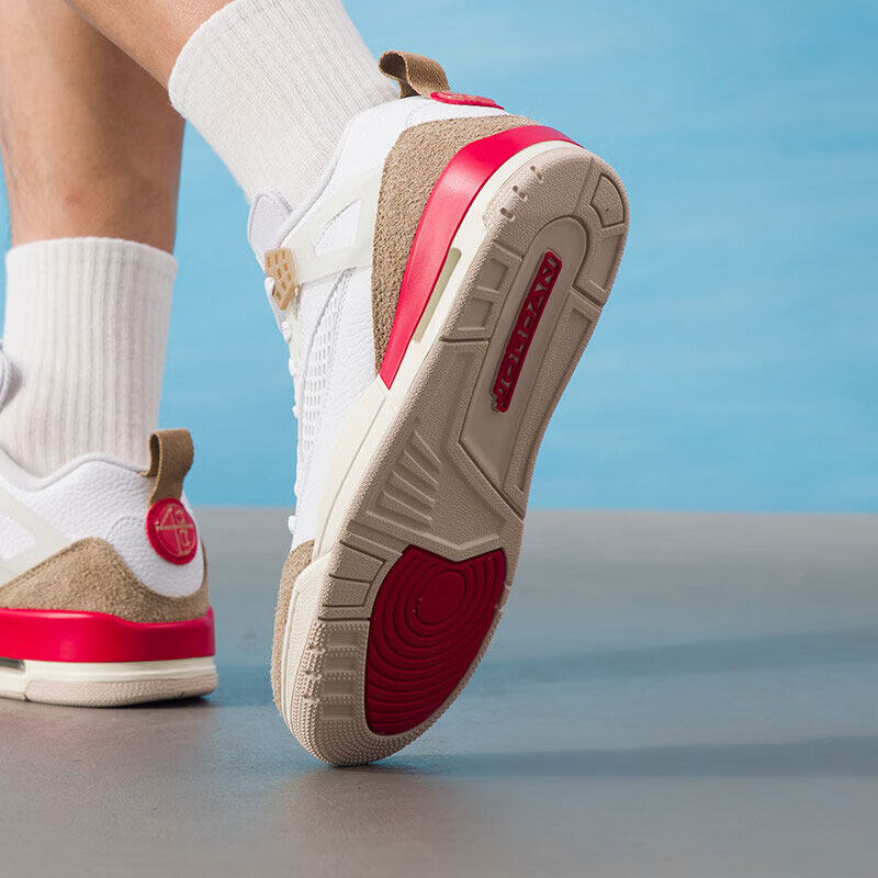 NIKE耐克男子JORDAN SPIKE低帮复古运动训练篮球鞋(型号FQ1759-105)融合经典设计与现代性能,致敬乔丹传奇。鞋身采用优质皮革与织物拼接,质感出众,搭配复古配色,彰显街头潮流风范。低帮设计提升脚踝灵活性,适合训练与日常穿搭。中底搭载轻质缓震科技,提供舒适脚感与稳定支撑,增强运动表现。经典飞翼标志与Jumpman标识点缀,细节彰显品牌基因。无论是篮球场还是街头,这款鞋都能轻松驾驭,是追求风格与功能兼备的型格之选。