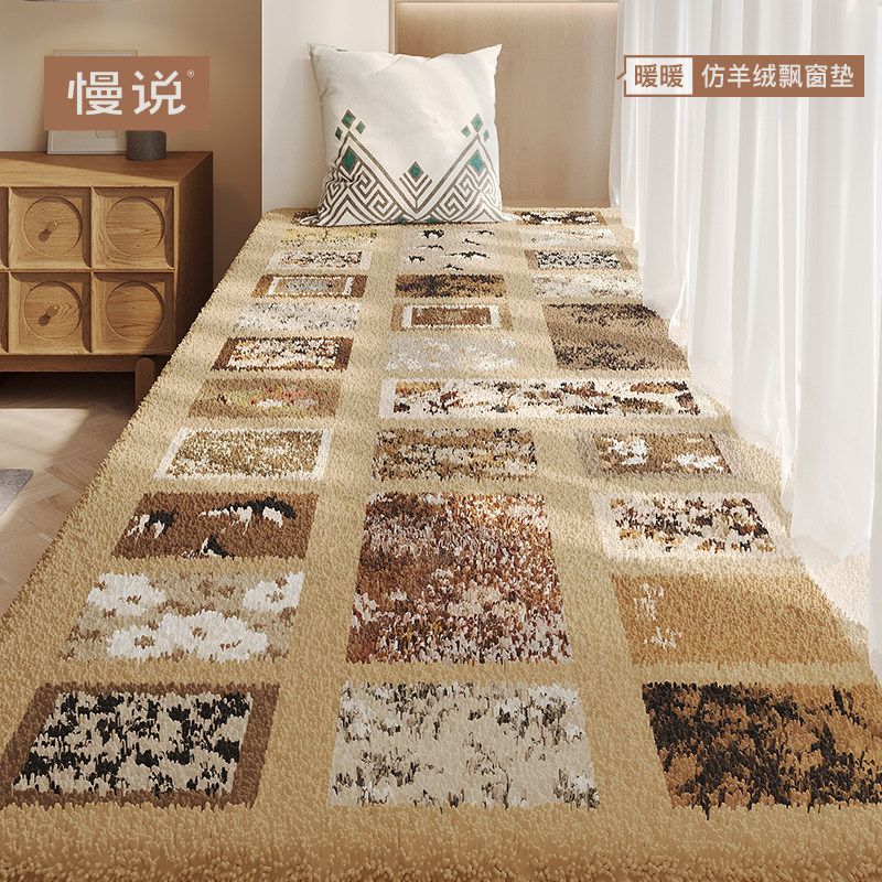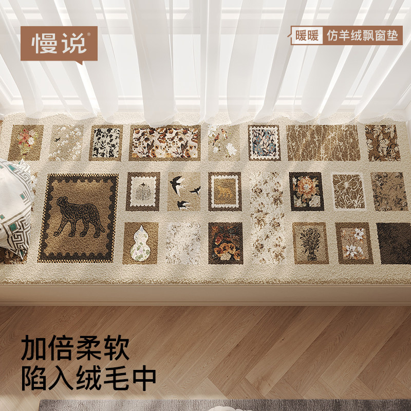 天猫复古轻奢飘窗垫2025新款卧室床边毯毛绒四季通用阳台地毯加厚坐垫