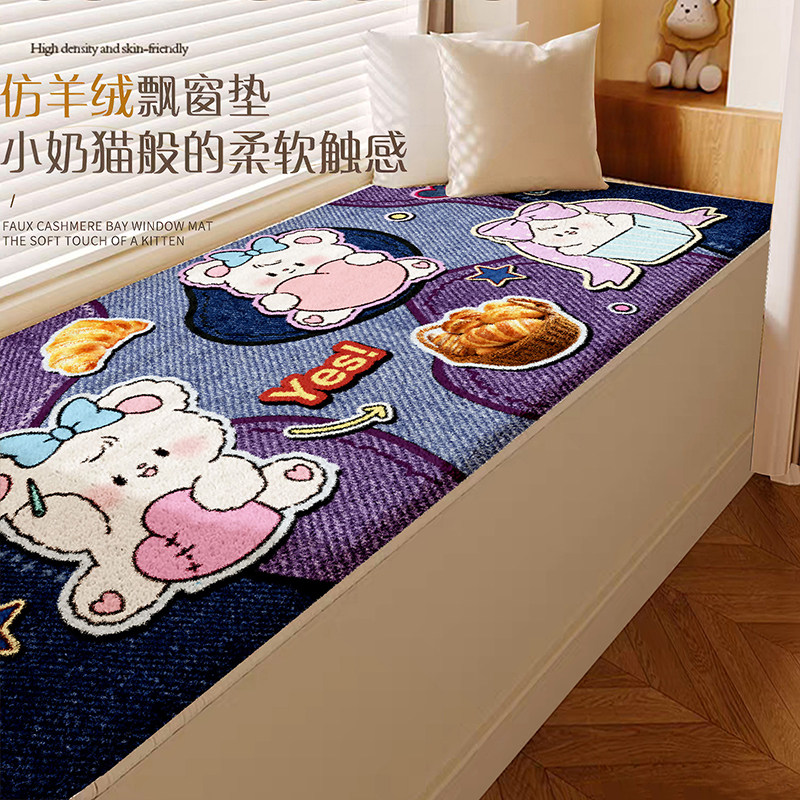 天猫卡通飘窗垫新款冬季主卧室阳台垫窗台垫床边地毯仿羊绒毛绒地毯
