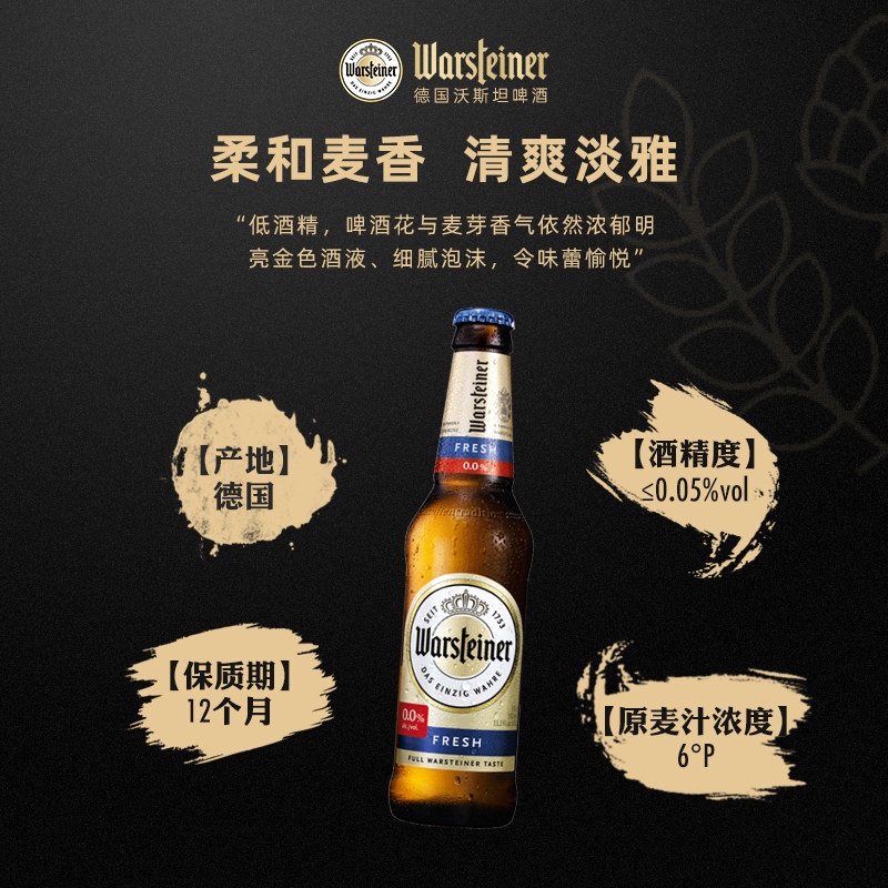 天猫沃斯坦(warsteiner)无醇啤酒330ml*24瓶装德国原装 低酒精无醇