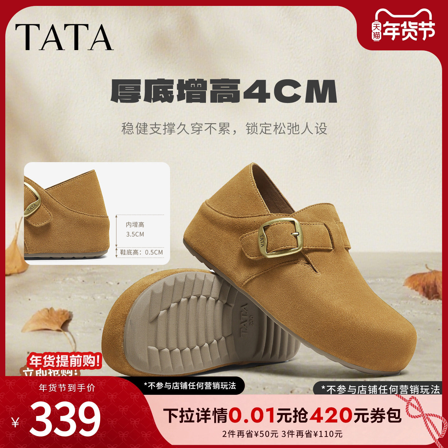 天猫TATA他她栗子勃肯女鞋2025加绒外穿棉鞋休闲毛毛新款鞋子4XN01CM5