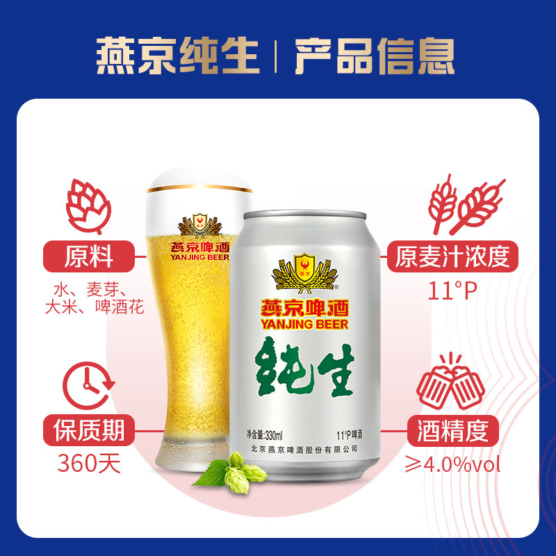 天猫燕京啤酒 燕京纯生330ml*24听罐装生啤 啤酒 整箱包邮 官方正品