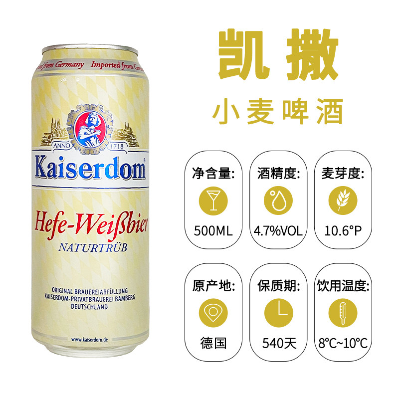 淘宝新酒德国原装进口凯撒小麦白啤酒浑浊原浆500ml*24罐整箱精酿