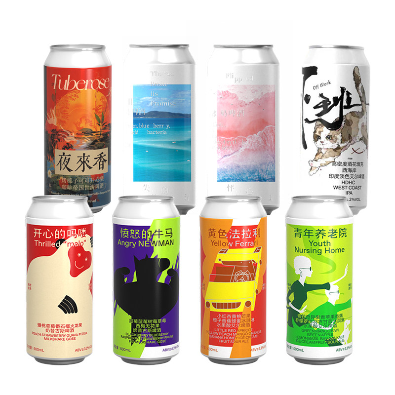 “制乐厂”精酿啤酒系列以独特命名诠释情绪与风味的碰撞。“失约的海”融合海盐与柑橘,清爽微咸,仿佛一场未赴的海边之约;“怦然心动”以草莓与接骨木花调出浪漫果香,轻盈甜美;“开心的吗喽”用热带水果与啤酒花碰撞,活力四射,趣味十足;“夜来香”融入花香与蜂蜜,深邃优雅,余韵悠长;“愤怒的牛马”则主打双倍IPA,苦劲十足,麦香浓烈,释放不羁能量;“大罐”则以高性价比大容量装,满足畅饮之乐。每一款都承载着情绪与创意,是精酿爱好者探索风味世界的个性之选。