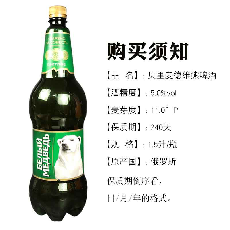 天猫1.5L俄罗斯进口大白熊图案啤酒贝里麦德维熊啤酒大桶装俄罗斯啤酒